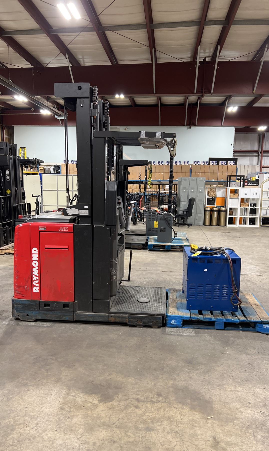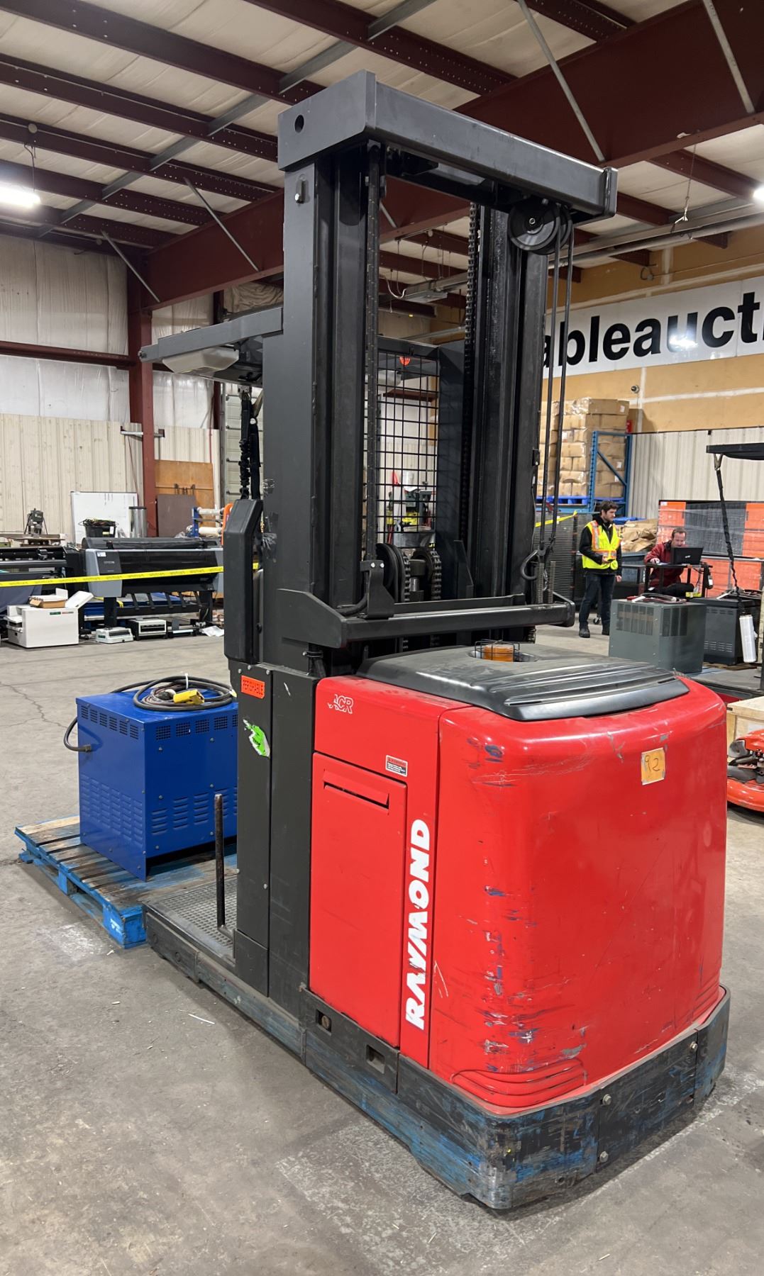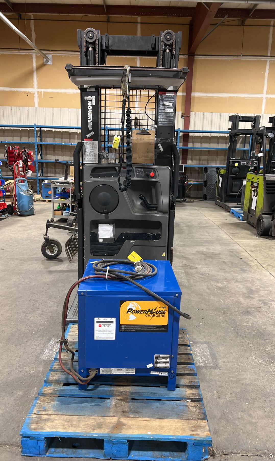 RAYMOND 550-OPC30TT 3 STAGE 3000 LBS CAPACITY 240" MAST HEIGHT 24V ELECTRIC STAND UP ORDER PICKER WITH POWERHAUSE PHP12-1050B3 CRPH INDUSTRIAL 3 PHZ BATTERY CHARGER *HAS FAULT CODES 43, G4 & G5, MACHINE NEEDS SERVICE*