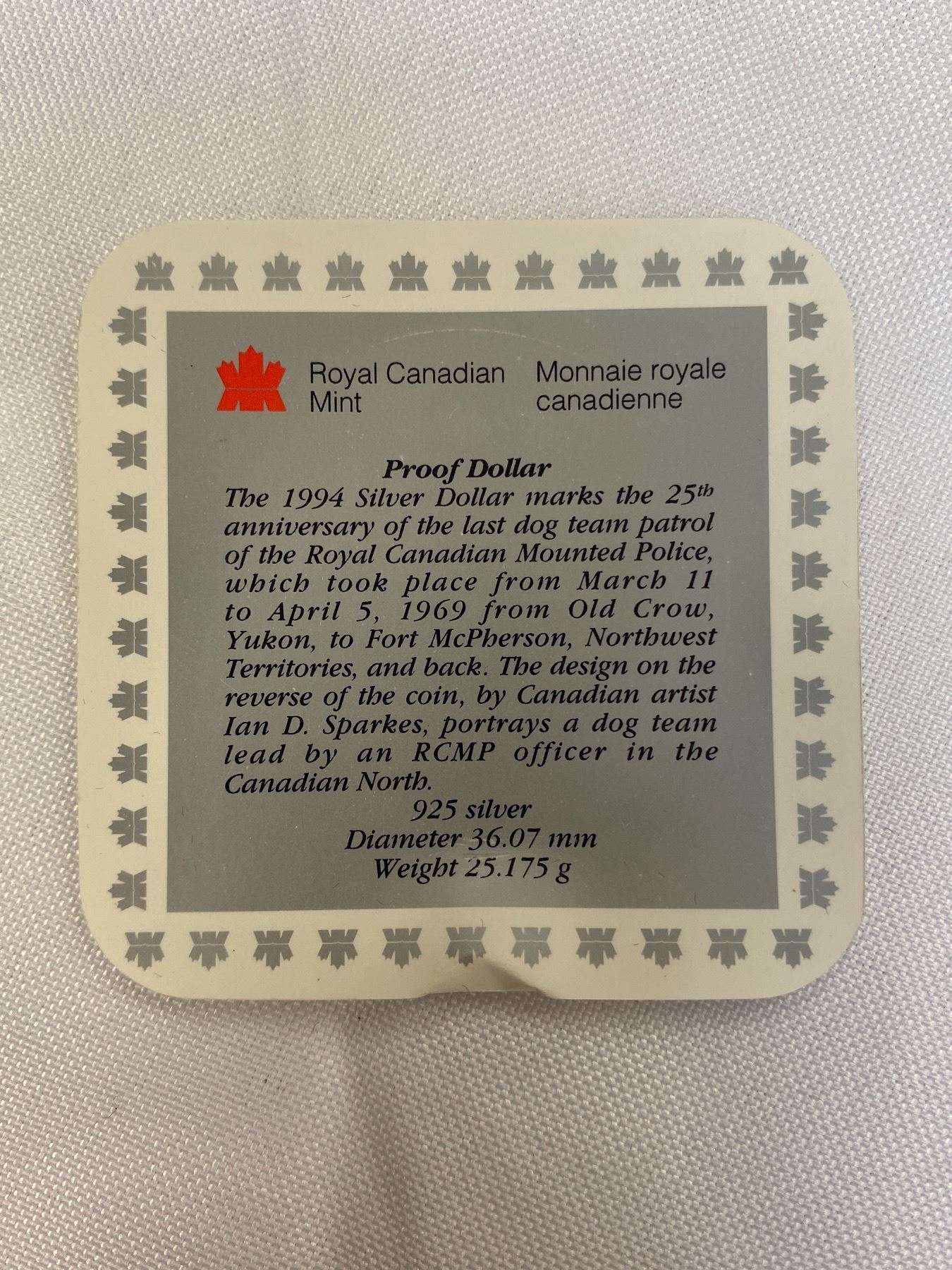 RCM 1994 Proof Silver Dollar Canadian Coin