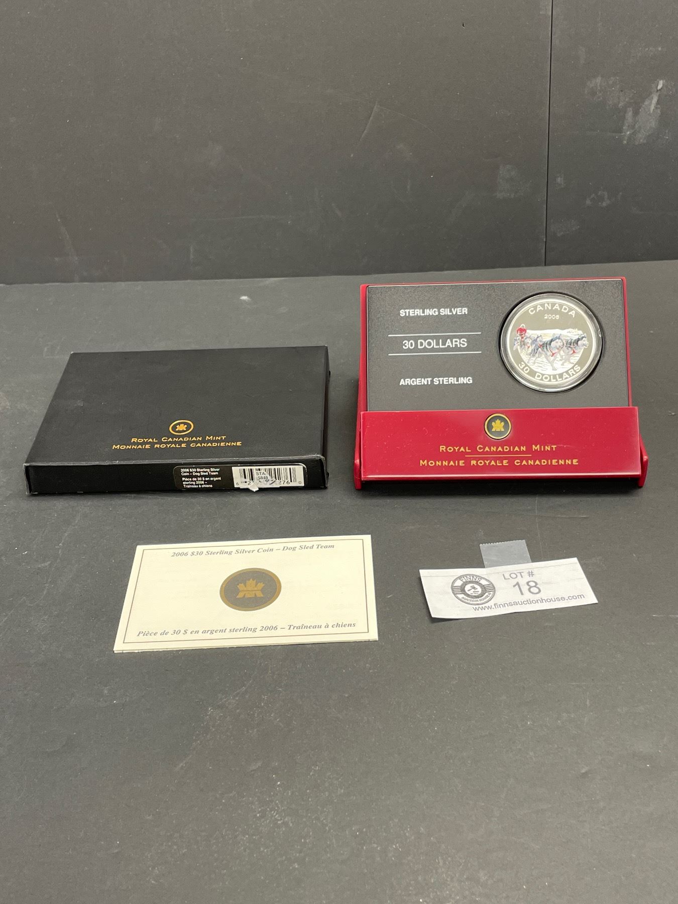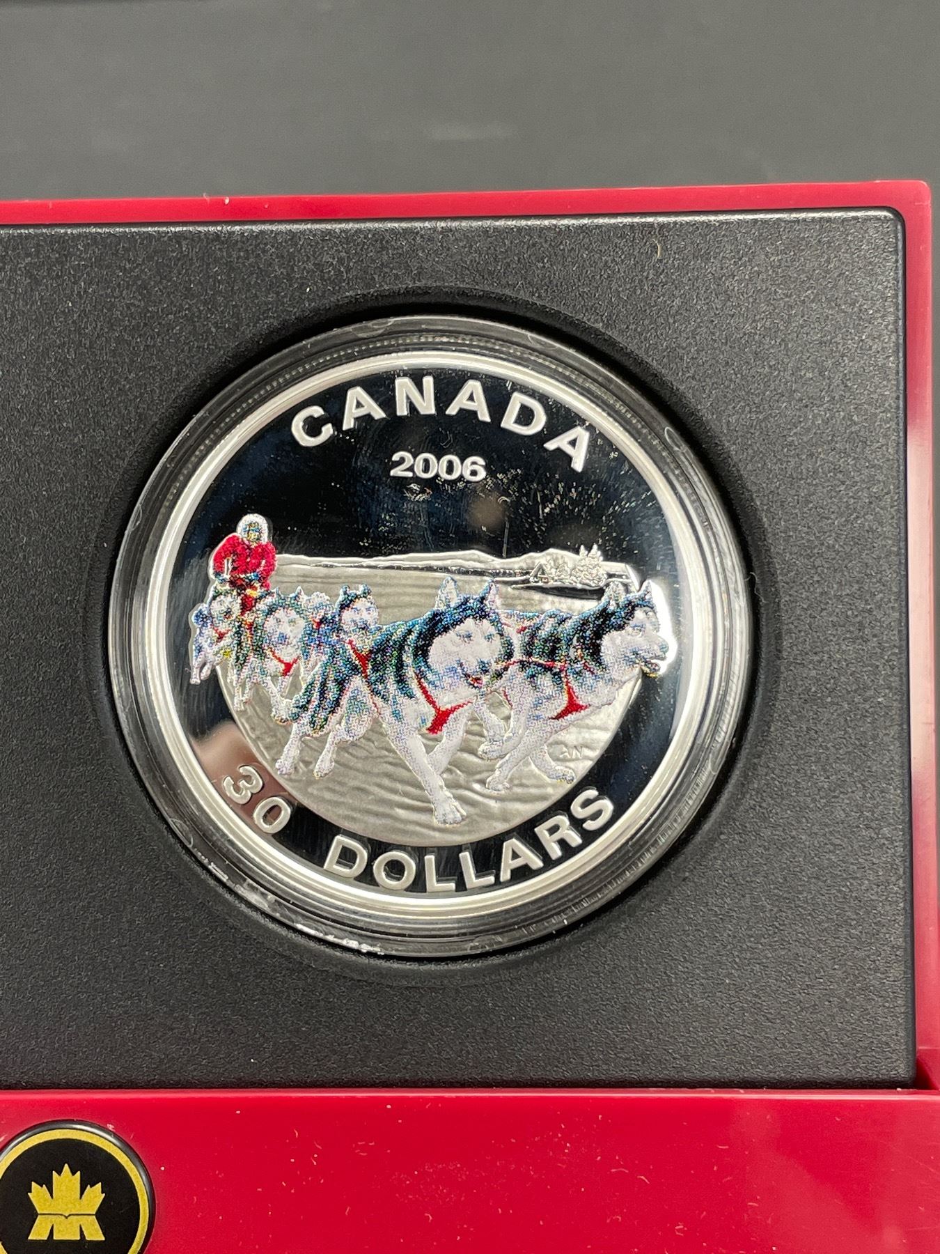 RCM 2006 $30 Sterling Silver Coin Dog Sled Team in Original Packaging