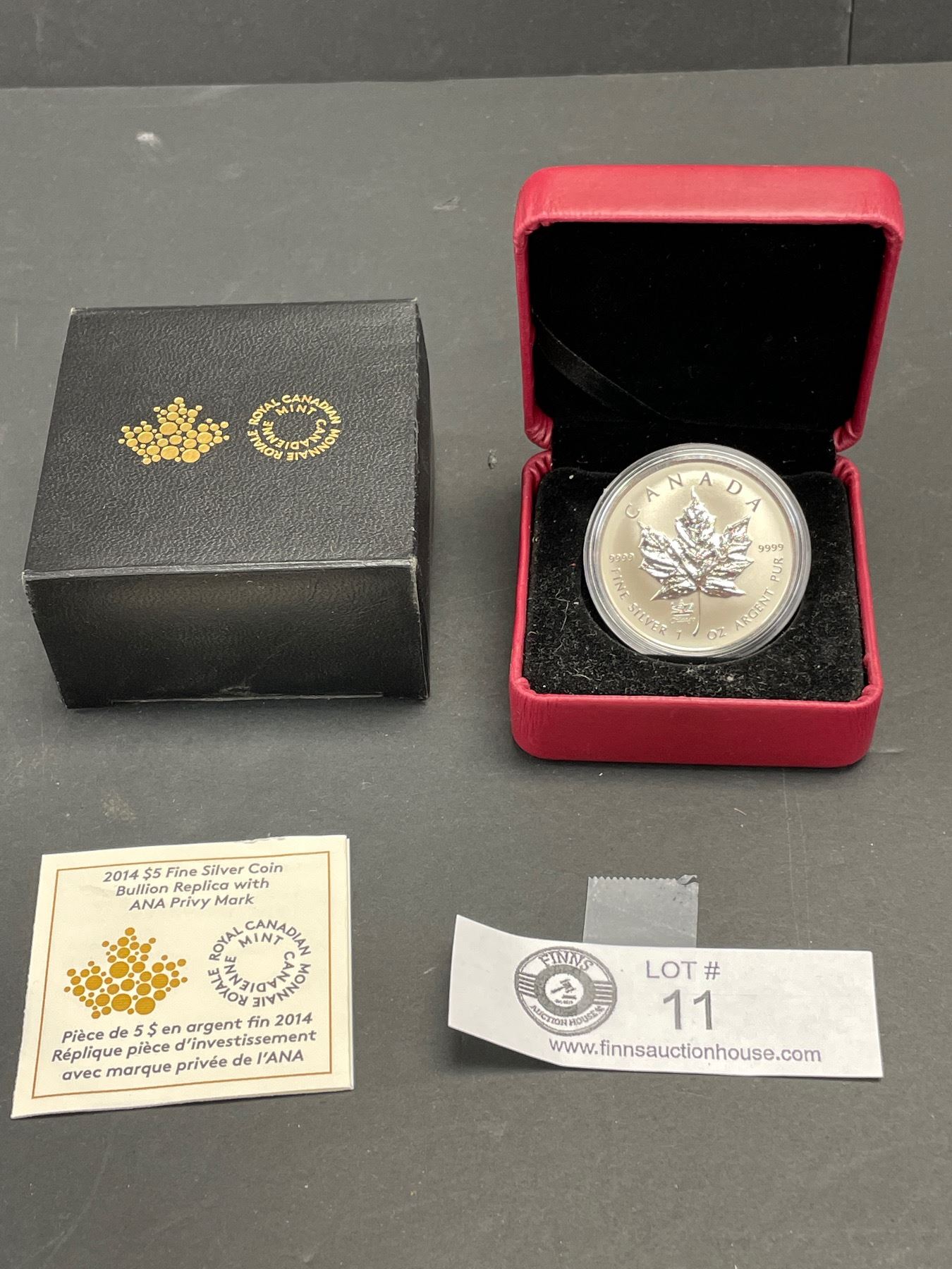 RCM 2014 $5 Fine Silver Coin American Numismatic Association Maple Leaf in Original Packaging