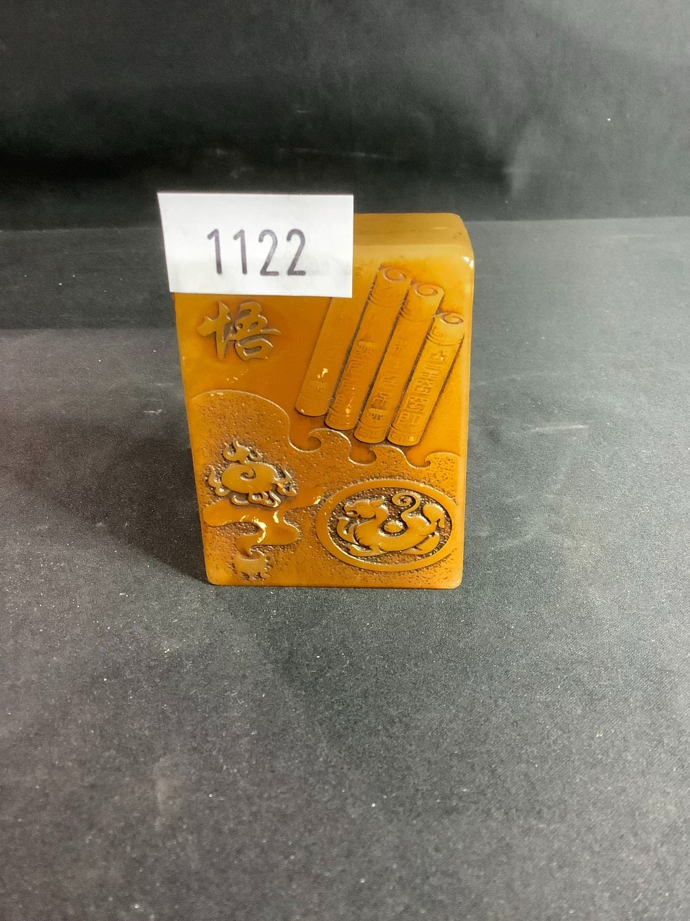 RECTANGULAR YELLOW SOAPSTONE STAMP