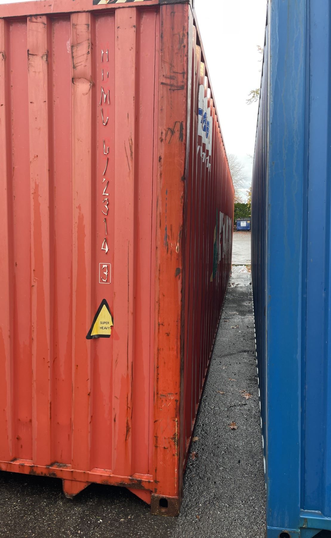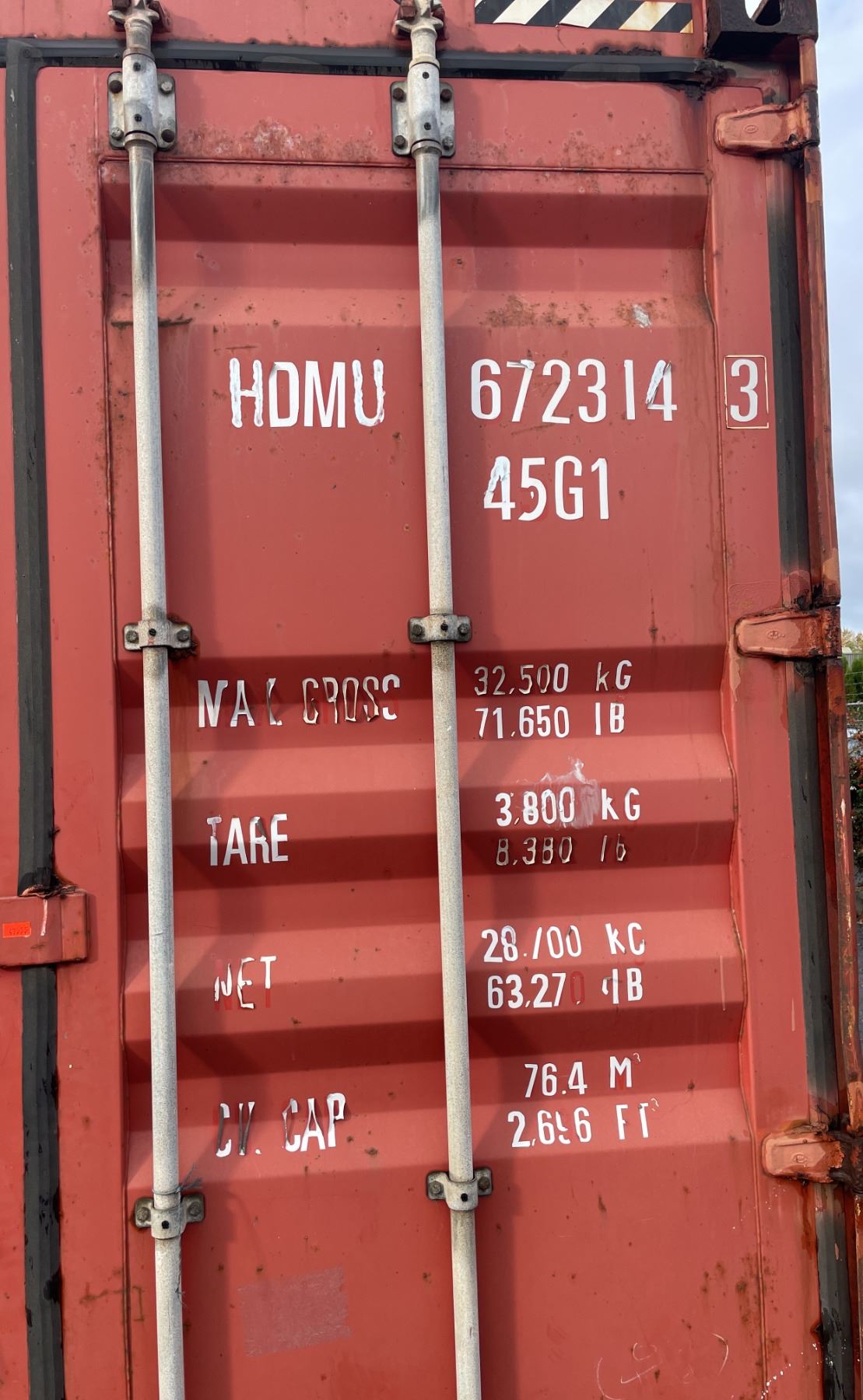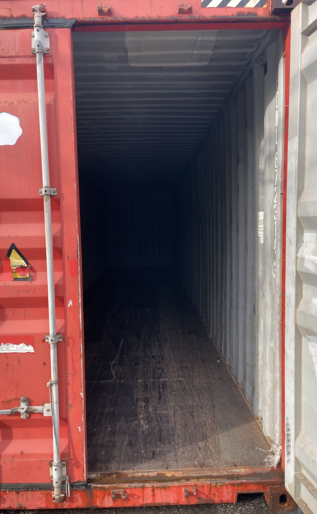 RED 40' H/C 71,650 MAX CAPACITY INDUSTRIAL TRANSPORT CONTAINER WITH DUAL SWING REAR DOORS WITH CAM LOCKS 40'L X 96"W X 114"H, CONTAINER #HDMU 672314 3 *REQUIRES HIAB CRANE OR TILT DECK TRAILER TO TRANSPORT*