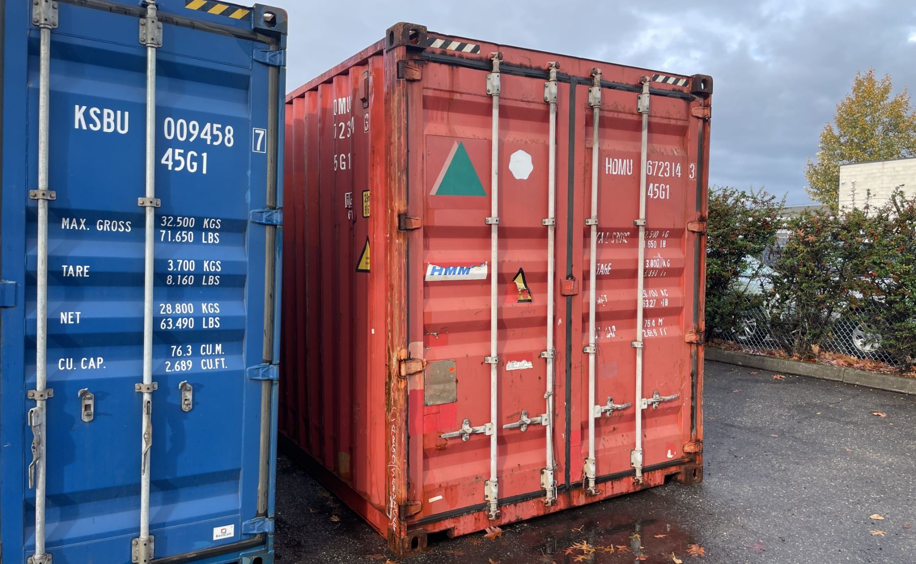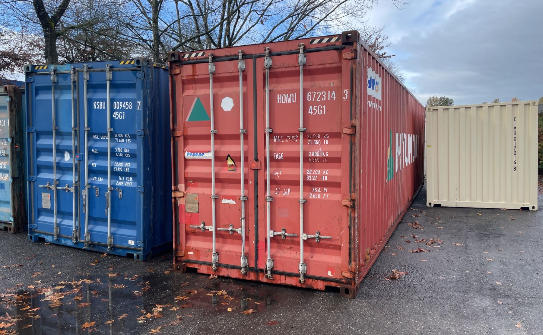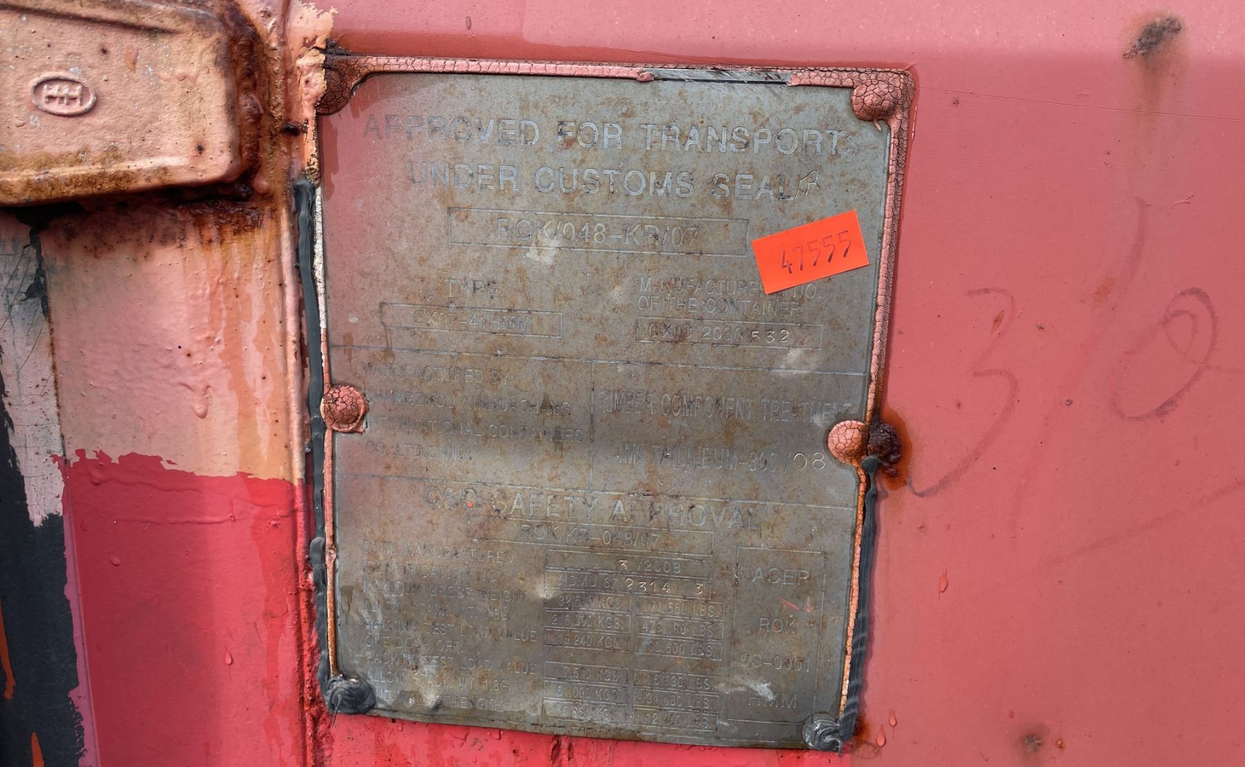 RED 40' H/C 71,650 MAX CAPACITY INDUSTRIAL TRANSPORT CONTAINER WITH DUAL SWING REAR DOORS WITH CAM LOCKS 40'L X 96"W X 114"H, CONTAINER #HDMU 672314 3 *REQUIRES HIAB CRANE OR TILT DECK TRAILER TO TRANSPORT*
