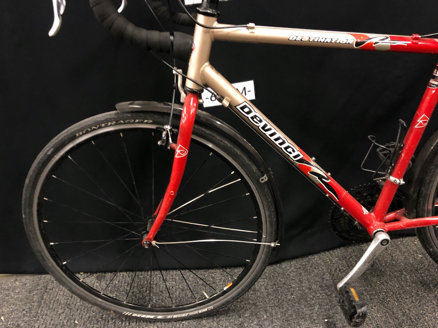 RED AND BROWN DEVINCI DESTINATION 27 SPEED ROAD BIKE