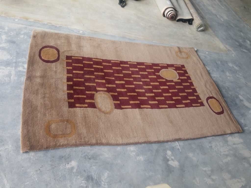 RED AND BROWN TUFTED AREA CARPET 59 X 95 INCHES 100% WOOL HAND MADE IN INDIA