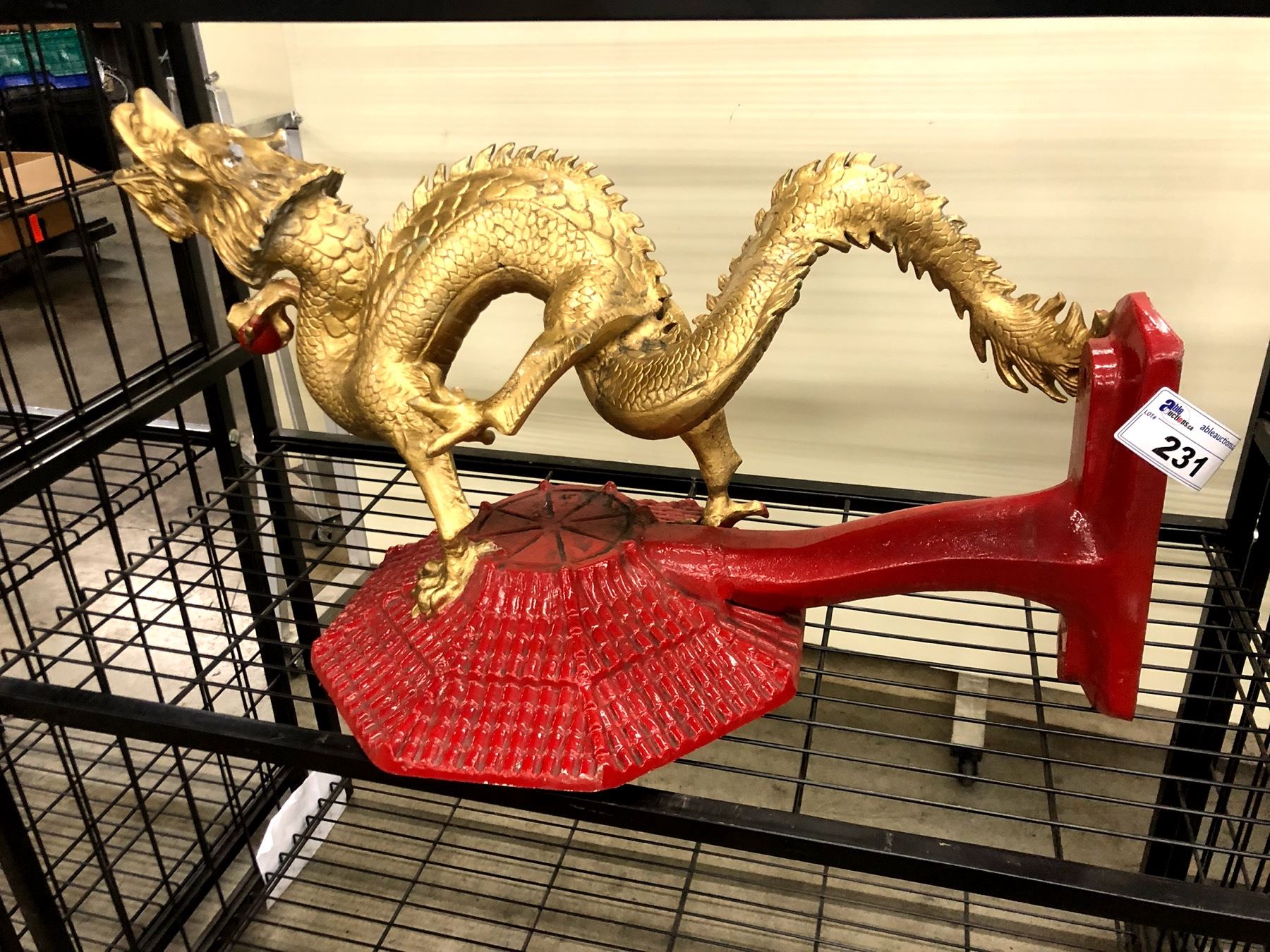 RED AND GOLD WALL MOUNTING DRAGON SCULPTURE - SOME DAMAGE