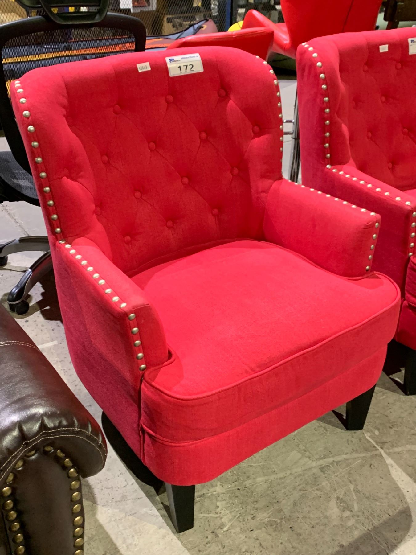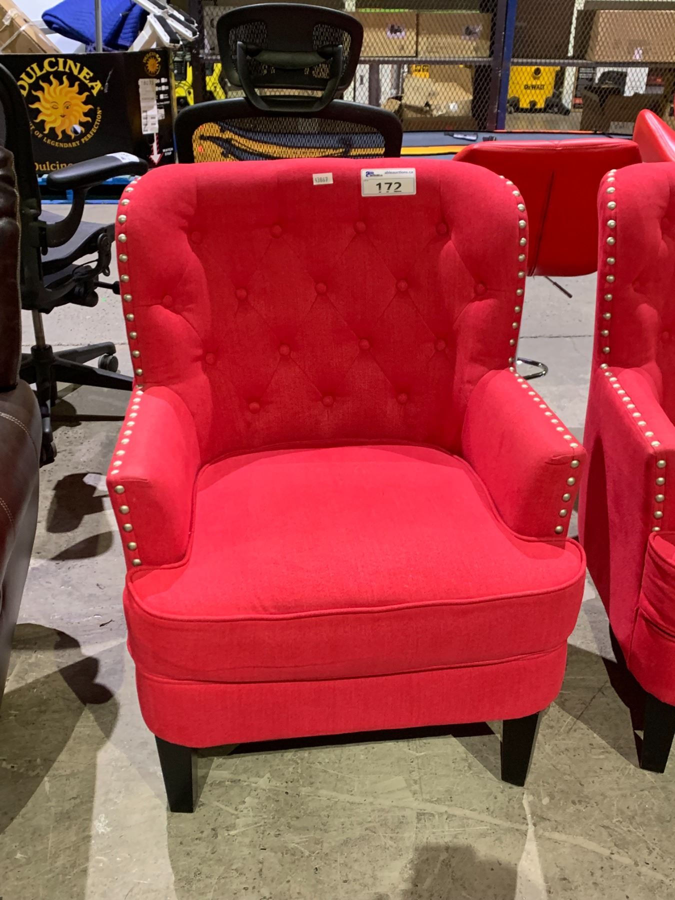 RED BUTTON BACK LOUNGE CHAIR APPROX 36" T X 20" W X 24" D