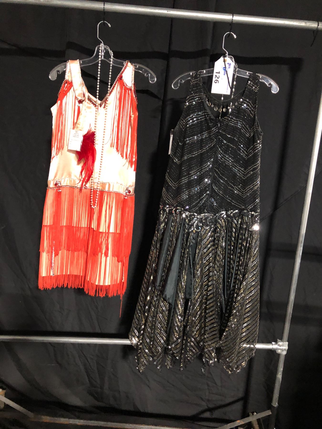 RED/GOLD 1920'S DRESS AND 1920'S BLACK DRESS WITH SILVER EMBELLISHMENTS DAILY RENTAL $90.00