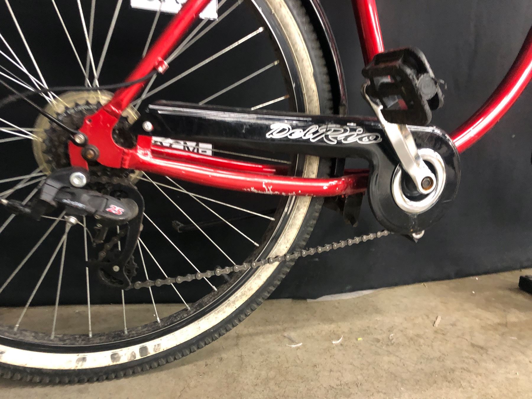 RED KENT DELRIO 7 SPEED CRUISER BIKE, DERAILLEUR BENT/DAMAGED, STANDOVER HEIGHT: 80 CM