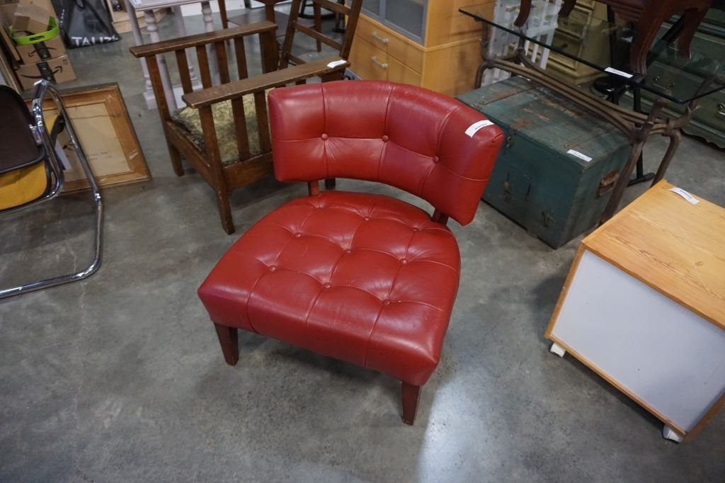 RED LEATHER TUFTED MOES ACCENT CHAIR