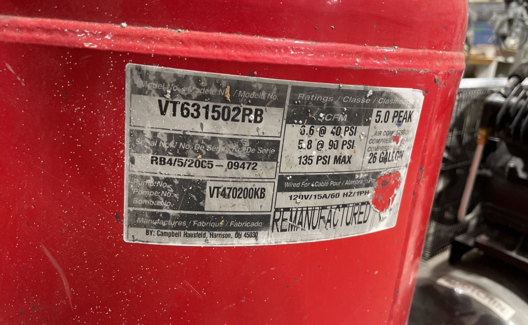 RED MOBILE INDUSTRIAL 26 GAL VERTICAL AIR COMPRESSOR WITH AIR HOSE