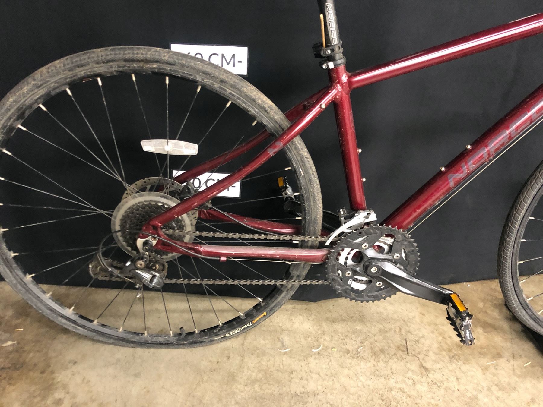 RED NORCO INDIE 27 SPEED HYBRID TRAIL BIKE WITH FRONT AND REAR HYDRAULIC DISC BRAKES, 16" FRAME SIZE, STANDOVER HEIGHT: 75 CM