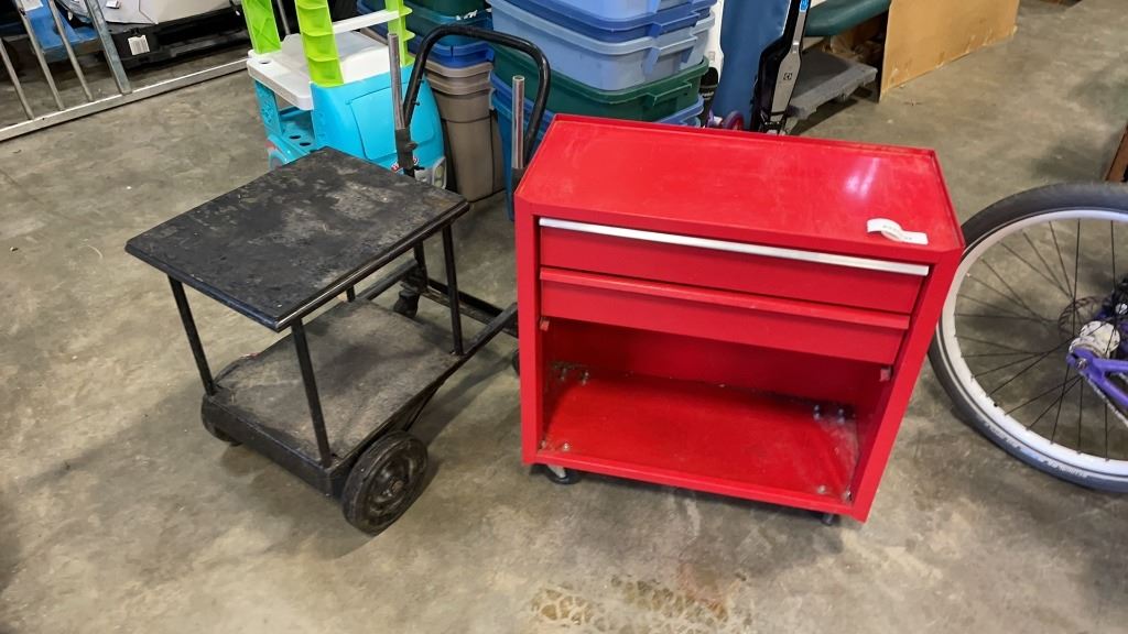RED ROLLING TOOL CHEST AND 2 TIER CART