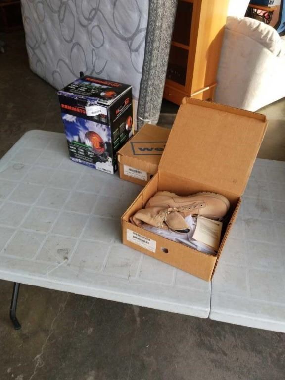 REMINGTON PROPANE HEATER AND 2 PAIRS WELLCO COMBAT BOOTS
