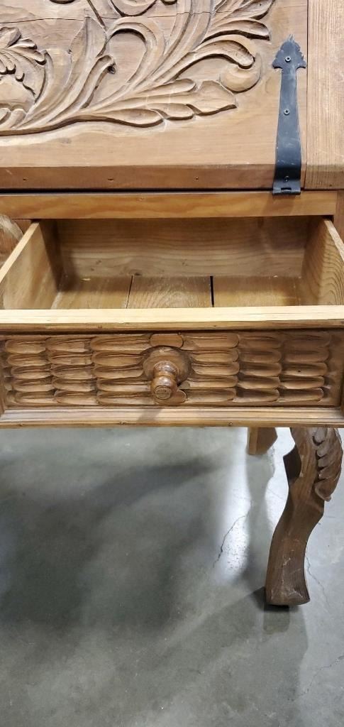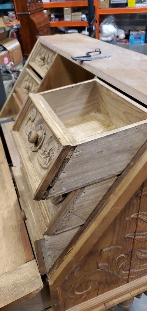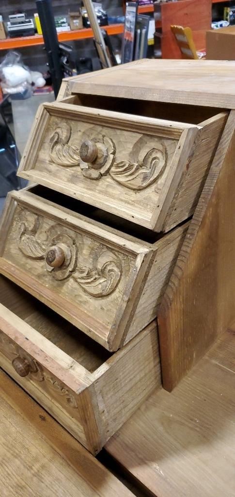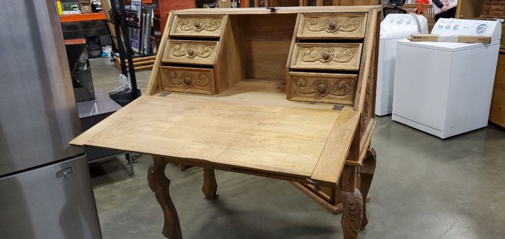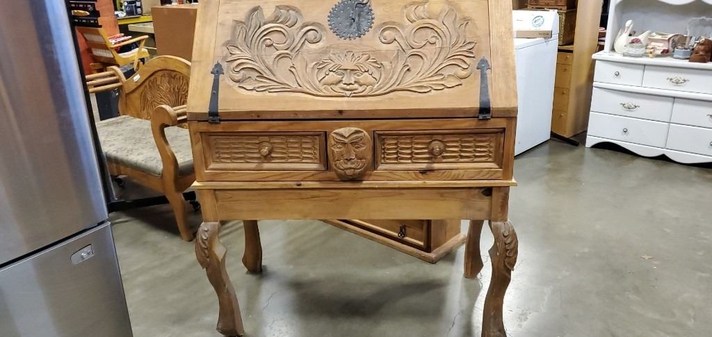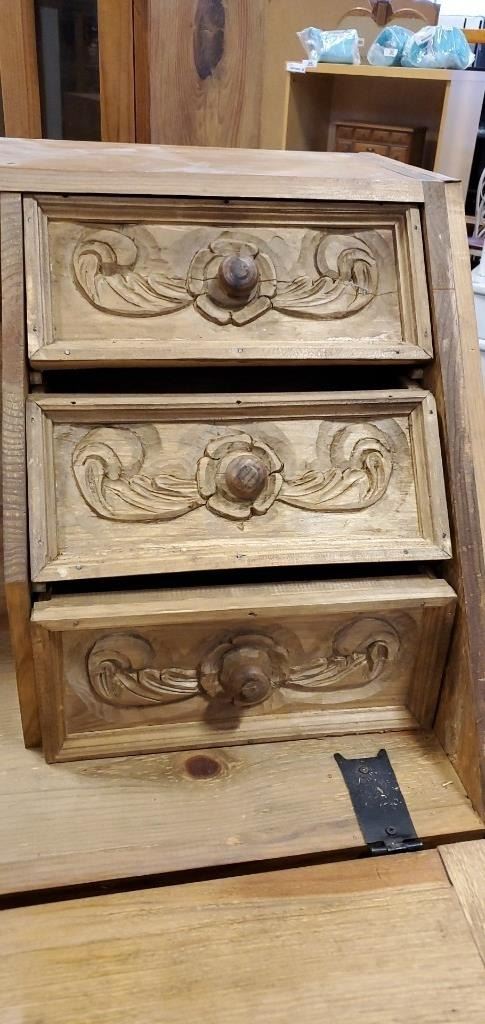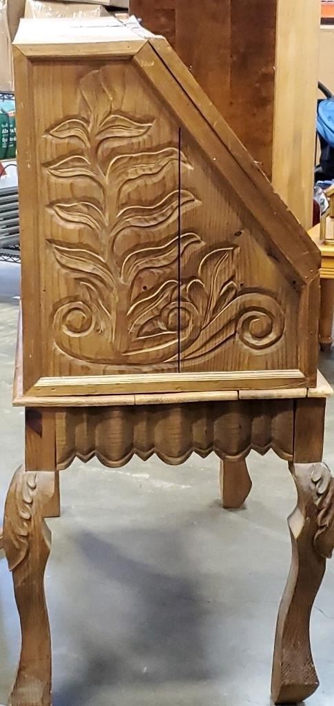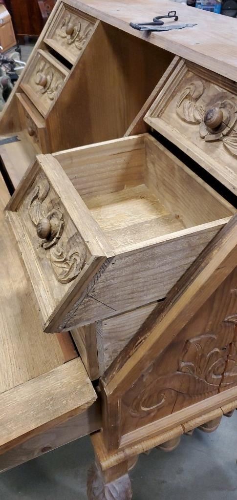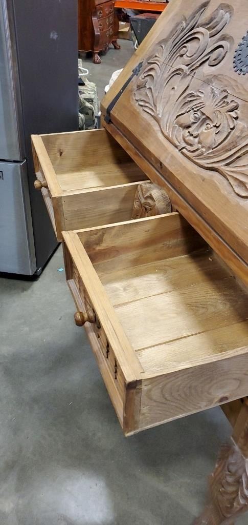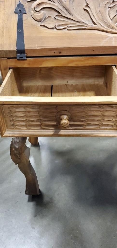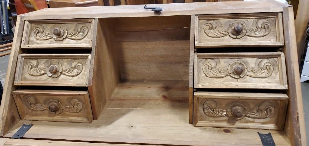 REPRODUCTION PINE HAND CARVED DROP FRONT DESK