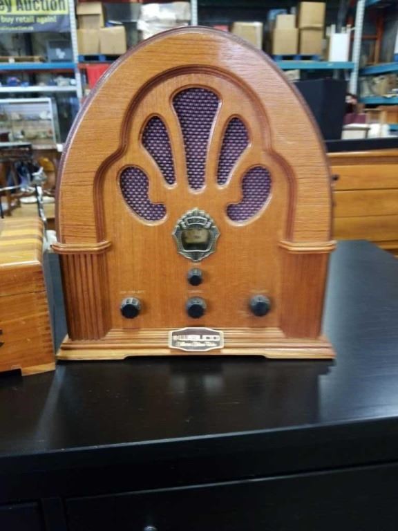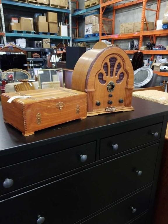 REPRODUCTION WELCO RADIO AND WOOD JEWELRY BOX