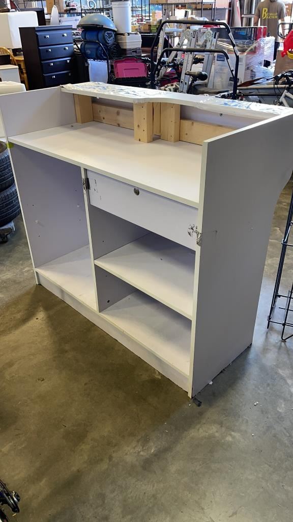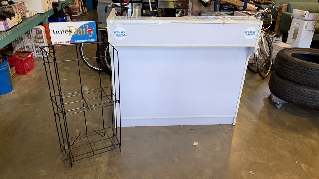 RETAIL/RECEPTION DESK AND FOLDING NEWSPAPER STAND