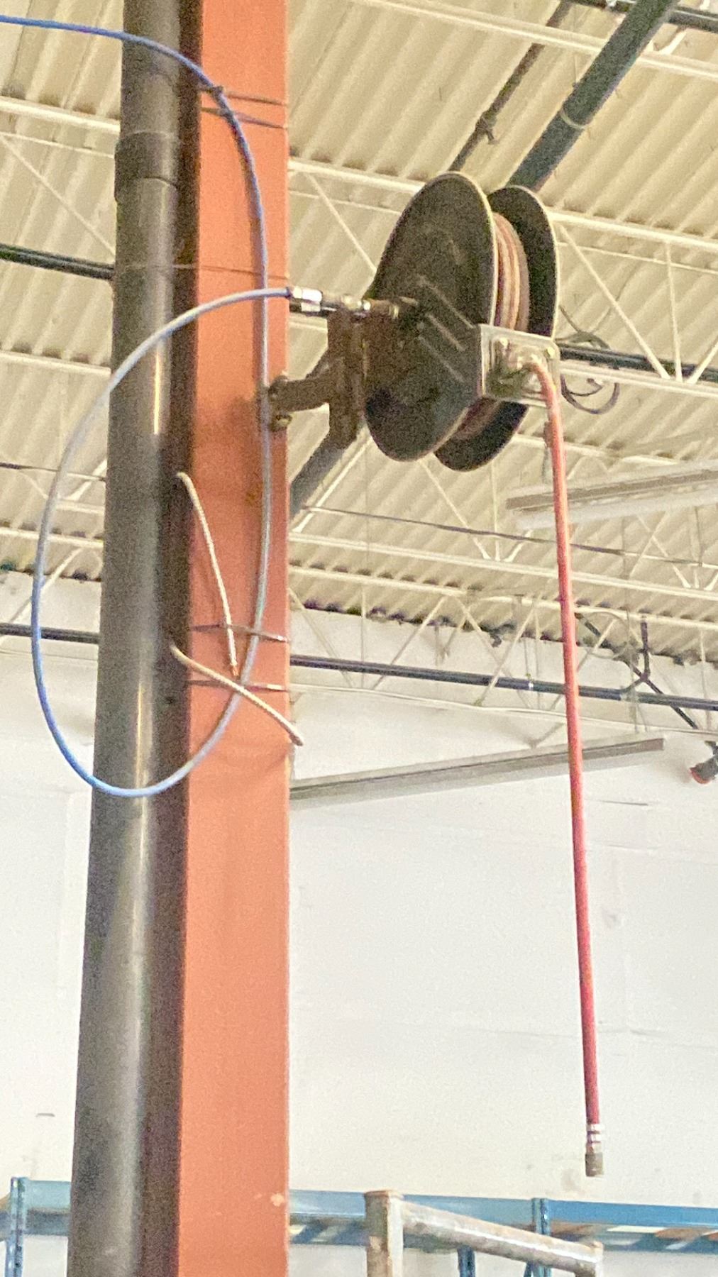 RETRACTABLE WALL MOUNT AIRLINE HOSE REEL WITH APPROXIMATELY 50 FOOT LINE