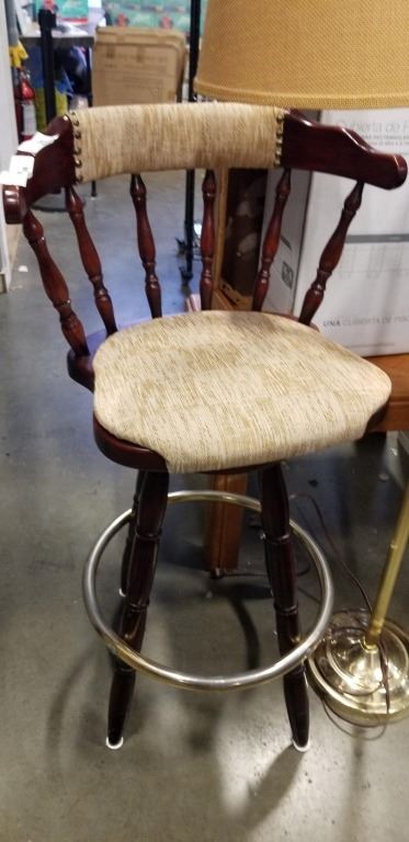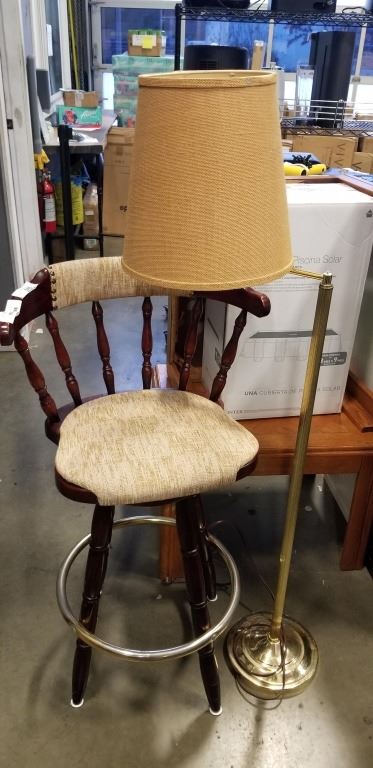 RETRO BARSTOOL AND BRASS BRIDGE LAMP