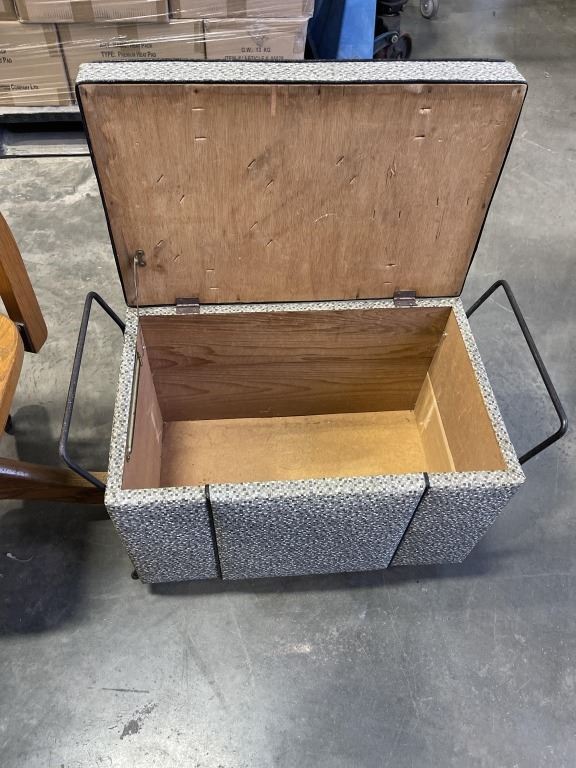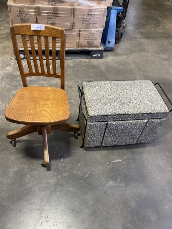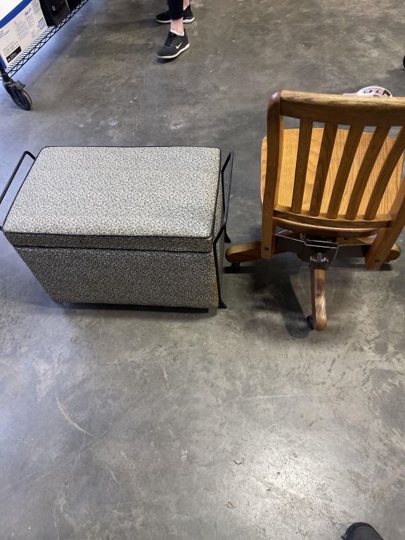 RETRO PADDES STORAGE HASSOCK AND ANTIQUE OAK STENO CHAIR