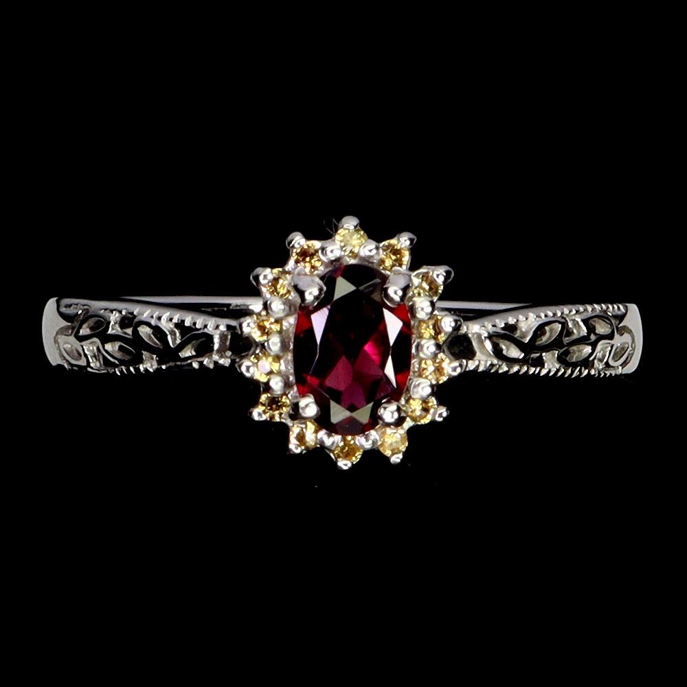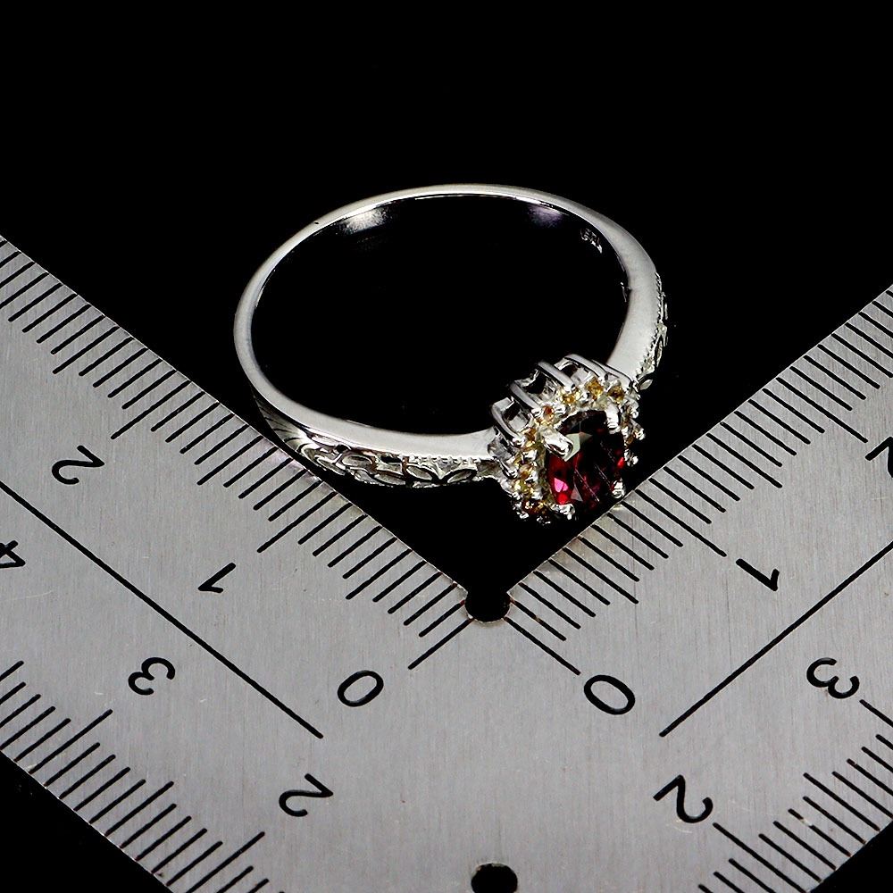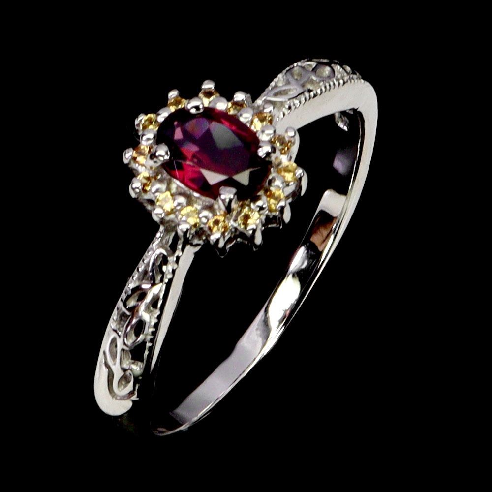 RHODOLITE GARNET AND SAPPHIRE RING IN 14K WHITE PLATED GOLD OVER 925 STERLING SILVER - SIZE 8 - APPRAISED REPLACEMENT VALUE