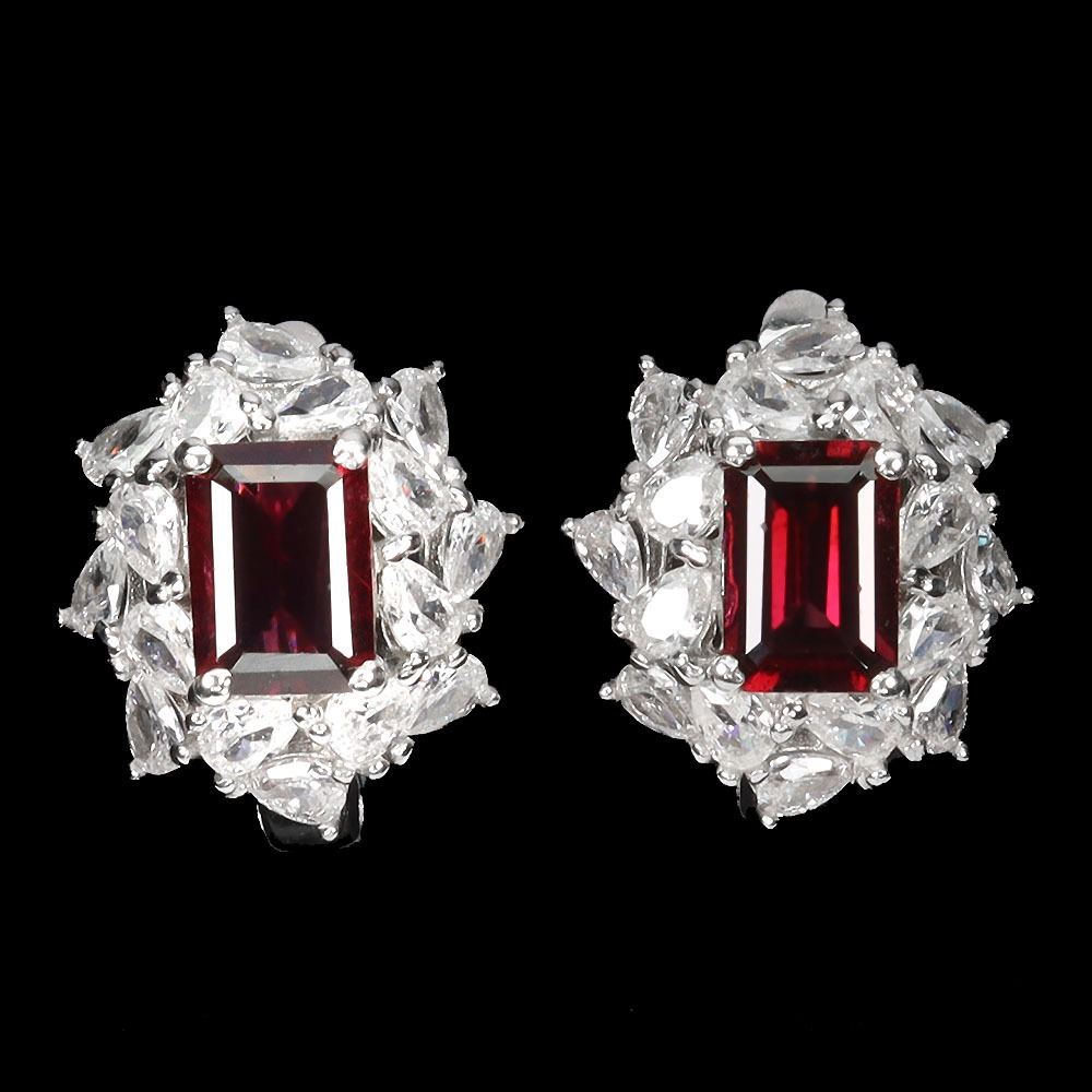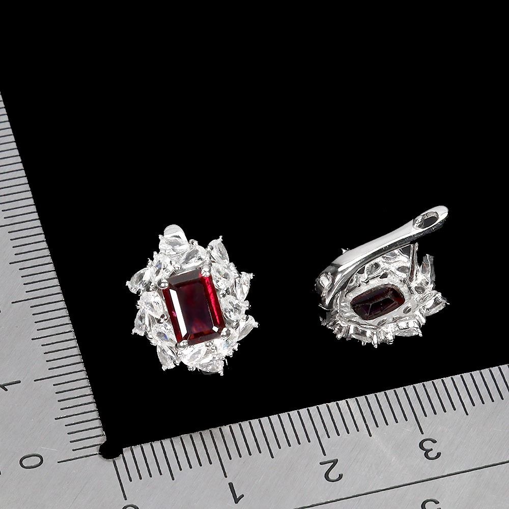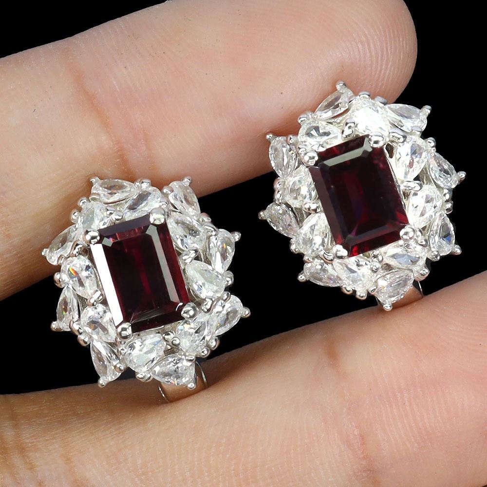 RHODOLITE GARNET EARRINGS IN 14K WHITE PLATED GOLD OVER 925 STERLING SILVER - APPRAISED REPLACEMENT VALUE