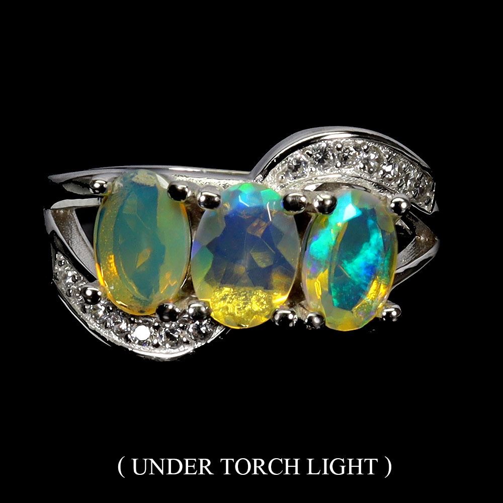 RICH COLOR PLAY OPAL RING IN 14K WHITE PLATED GOLD OVER 925 STERLING SILVER - SIZE 8 -APPRAISED REPLACEMENT VALUE