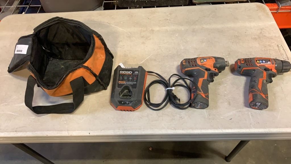 RIDGID 12V DRILL AND IMPACT DRIVER 2 BATTERIES AND CHARGER TESTED AND WORKING