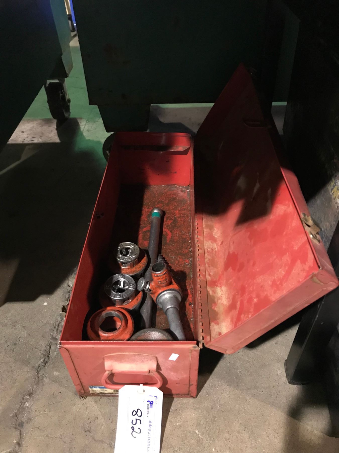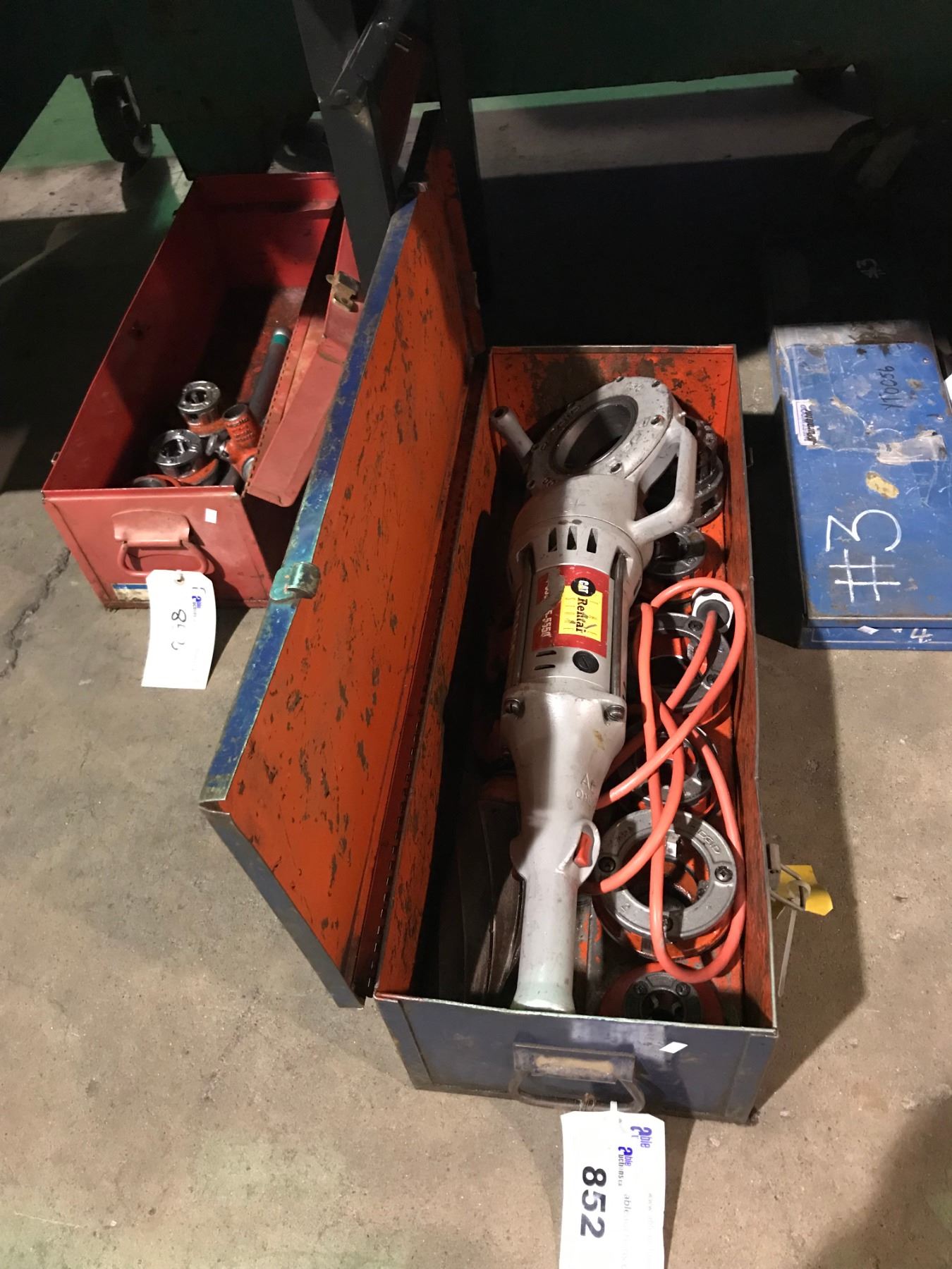 RIDGID 700 ELECTRIC HAND OPERATED PIPE THREADER WITH ATTACHMENTS & TOOL CASE WITH RIDGID HAND THREADER & ASSORTED ATTACHMENTS