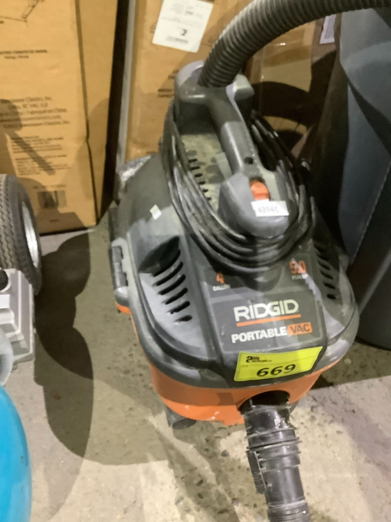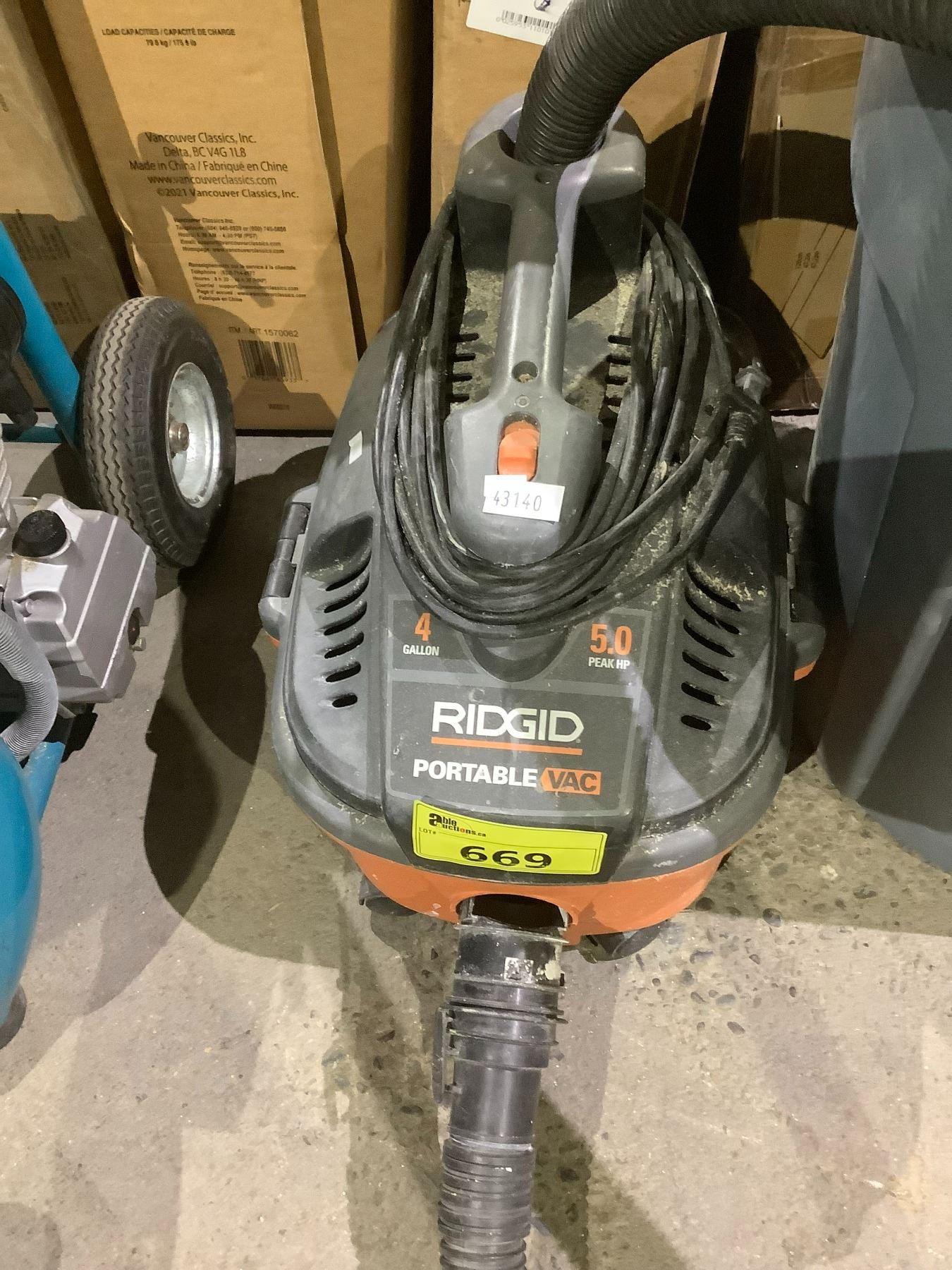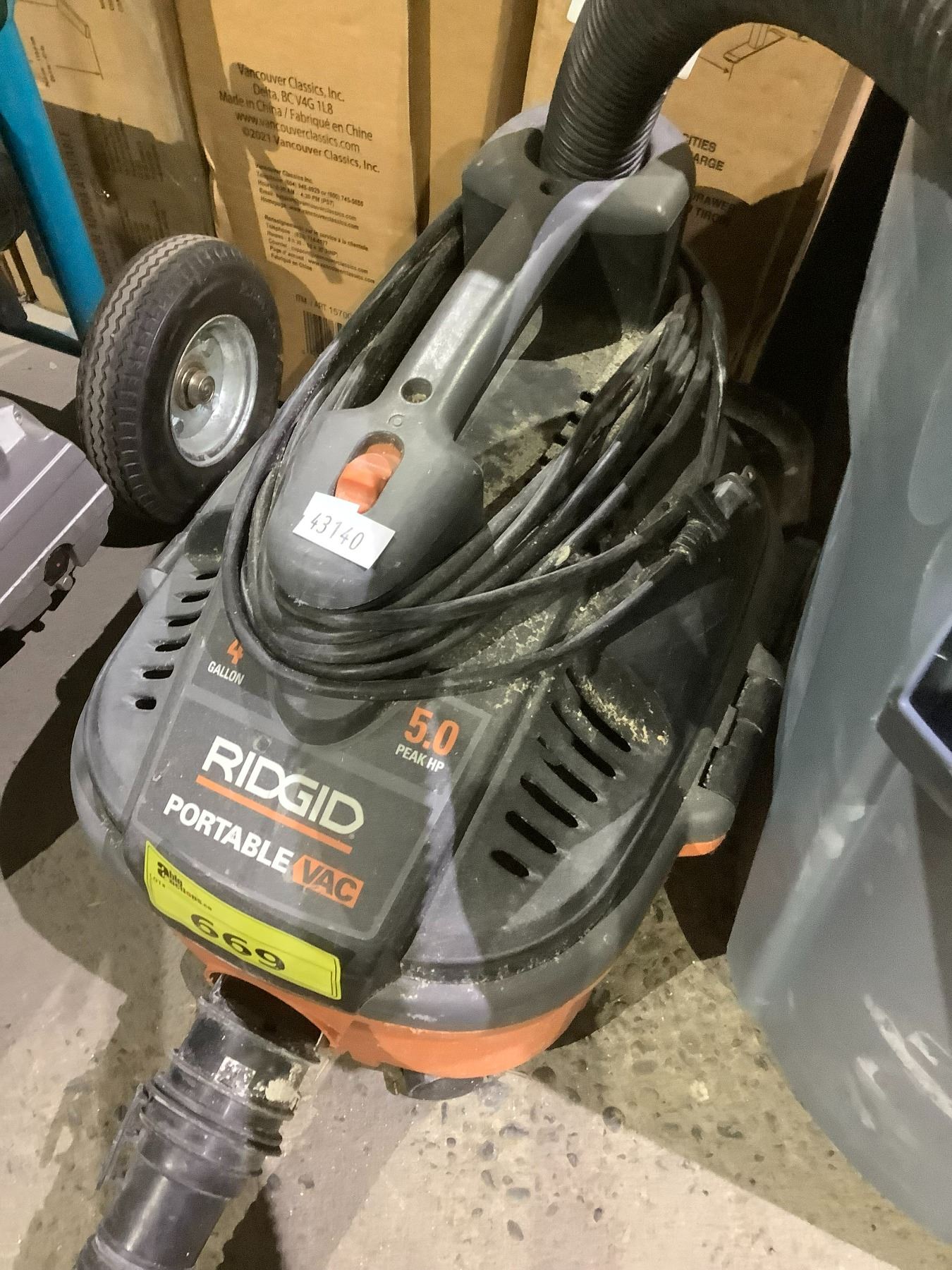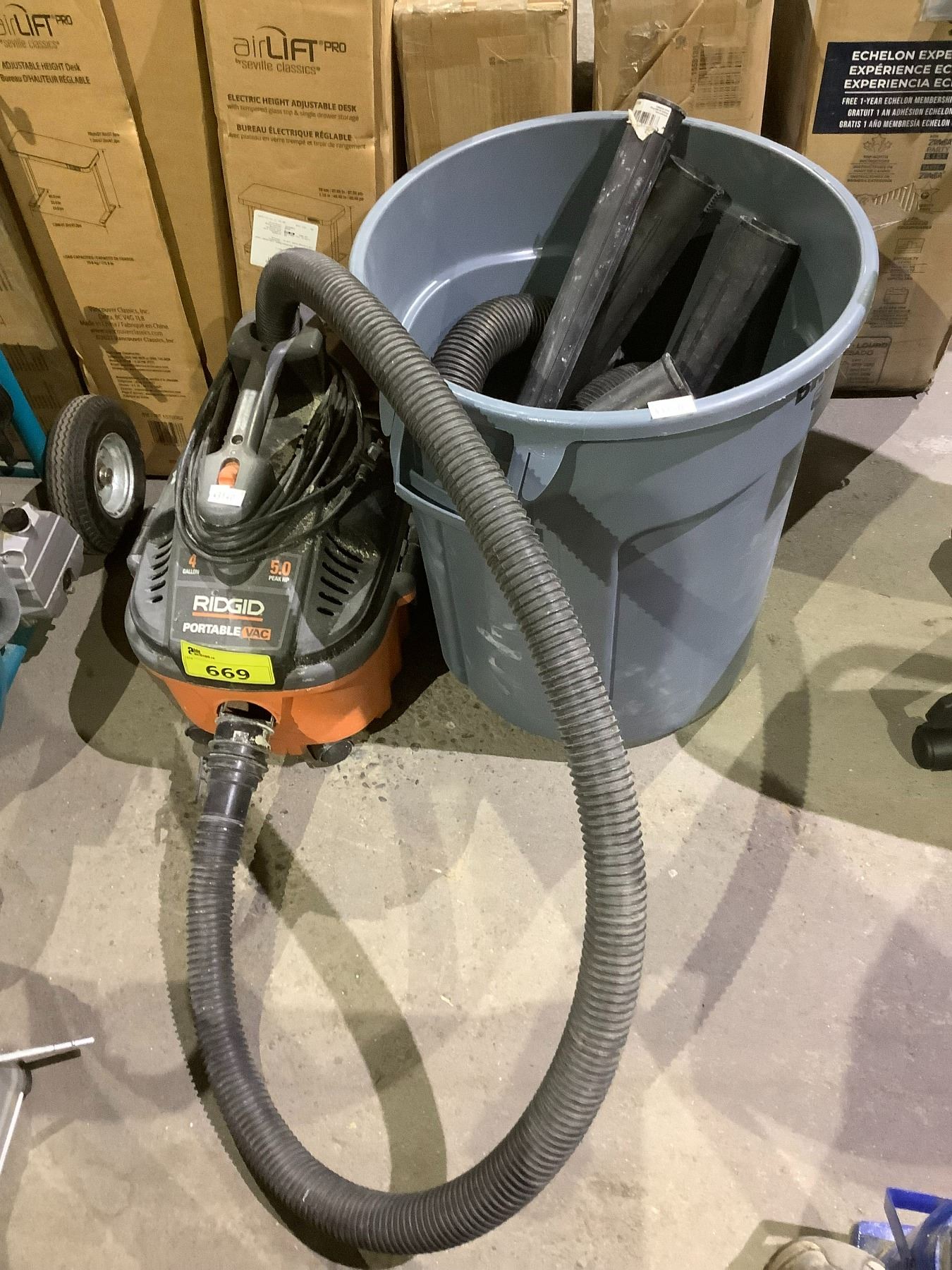 RIDGID PORTABLE VAC 4 GALLON 5HP WITH ATTACHMENTS