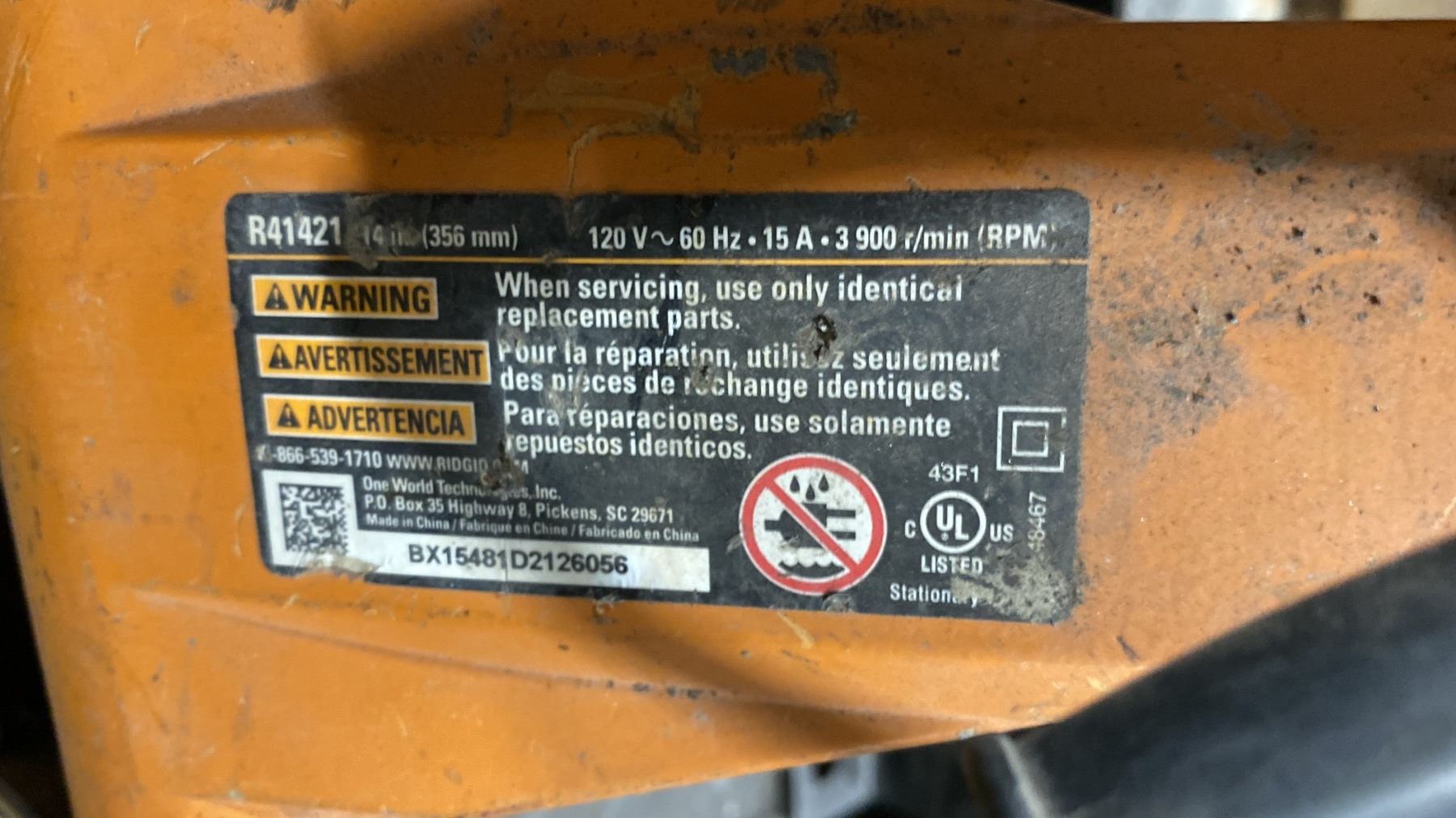 RIDGID R41421 INDUSTRIAL ELECTRIC 14" METAL CUTTING CHOP SAW