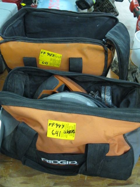 RIDGID SKIL SAW IN BAG & RIDGID CORDLESS DRILL & SANDER, NO BATTERY OR CHARGER, IN BAG