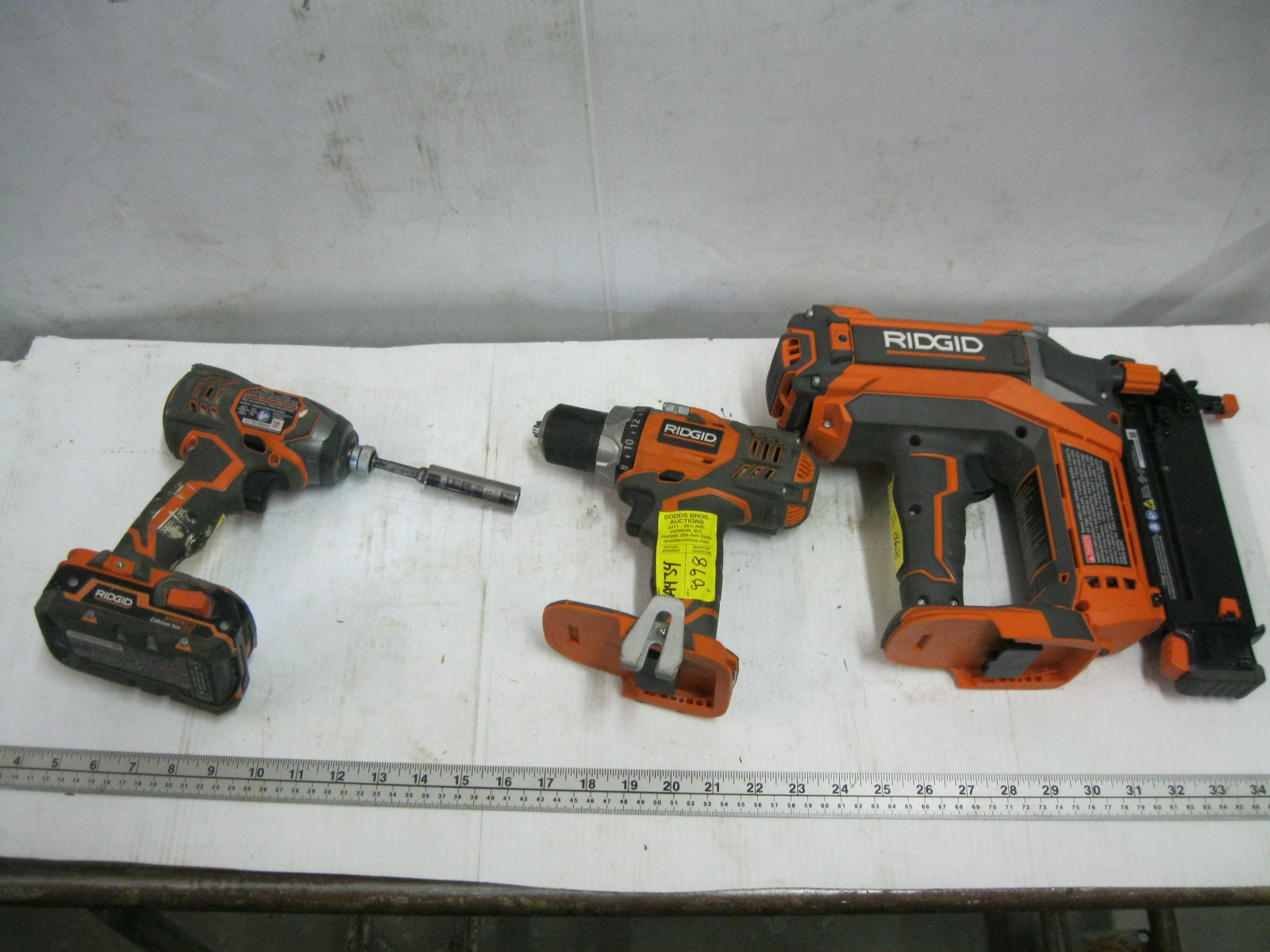 RIGID BRAD NAILER, DRILL & IMPACT DRIVER W/BATTERY & CHARGER