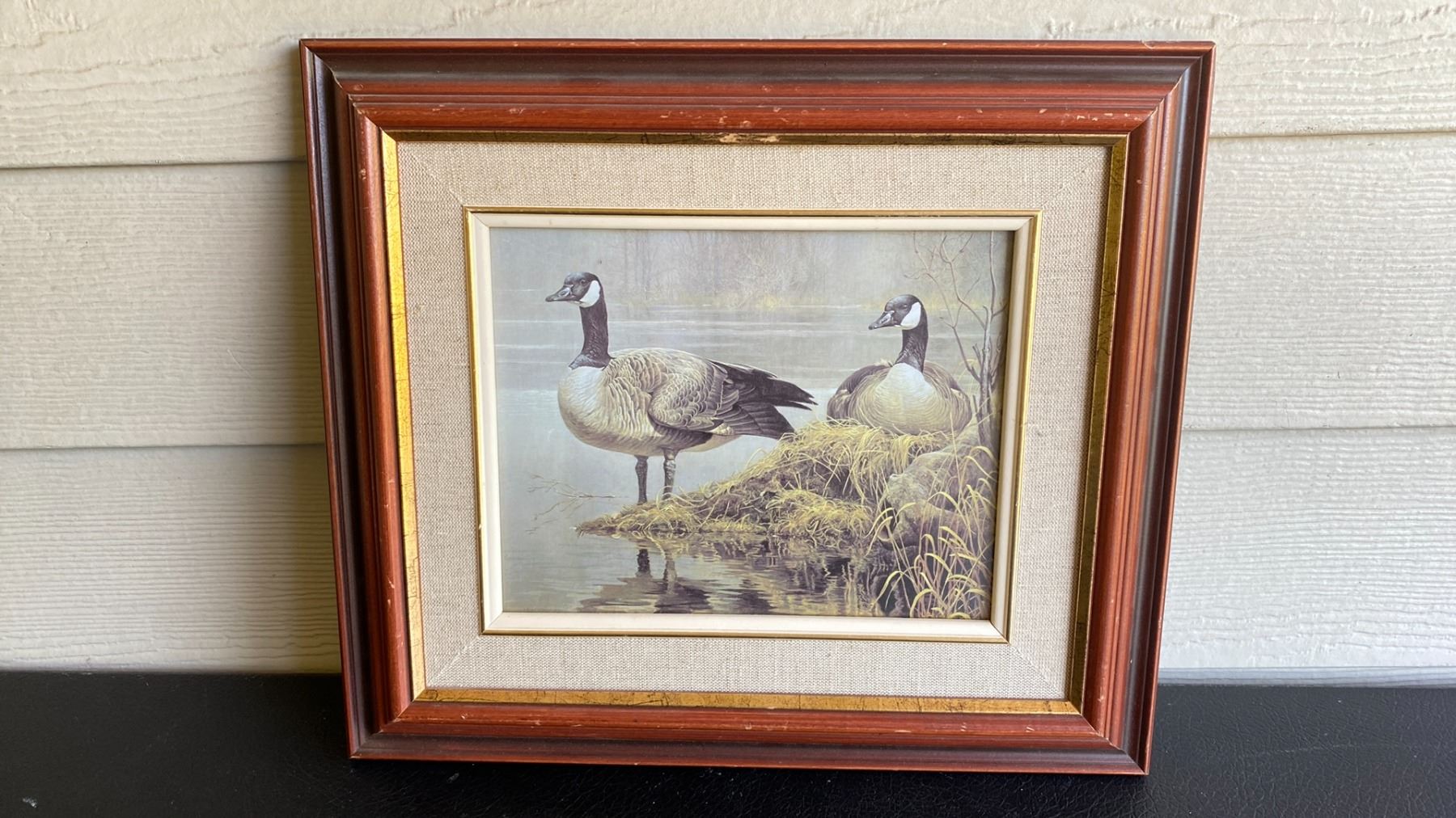 ROBERT BATEMAN "CANADA GEESE - NESTING" FRAMED PRINT (16" X 14" FRAMED)