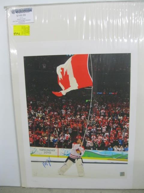 ROBERTO LUONGO 2010 TEAM CANADA MENS WINTER OLYMPICS SIGNED FLAG WAVING PHOTO