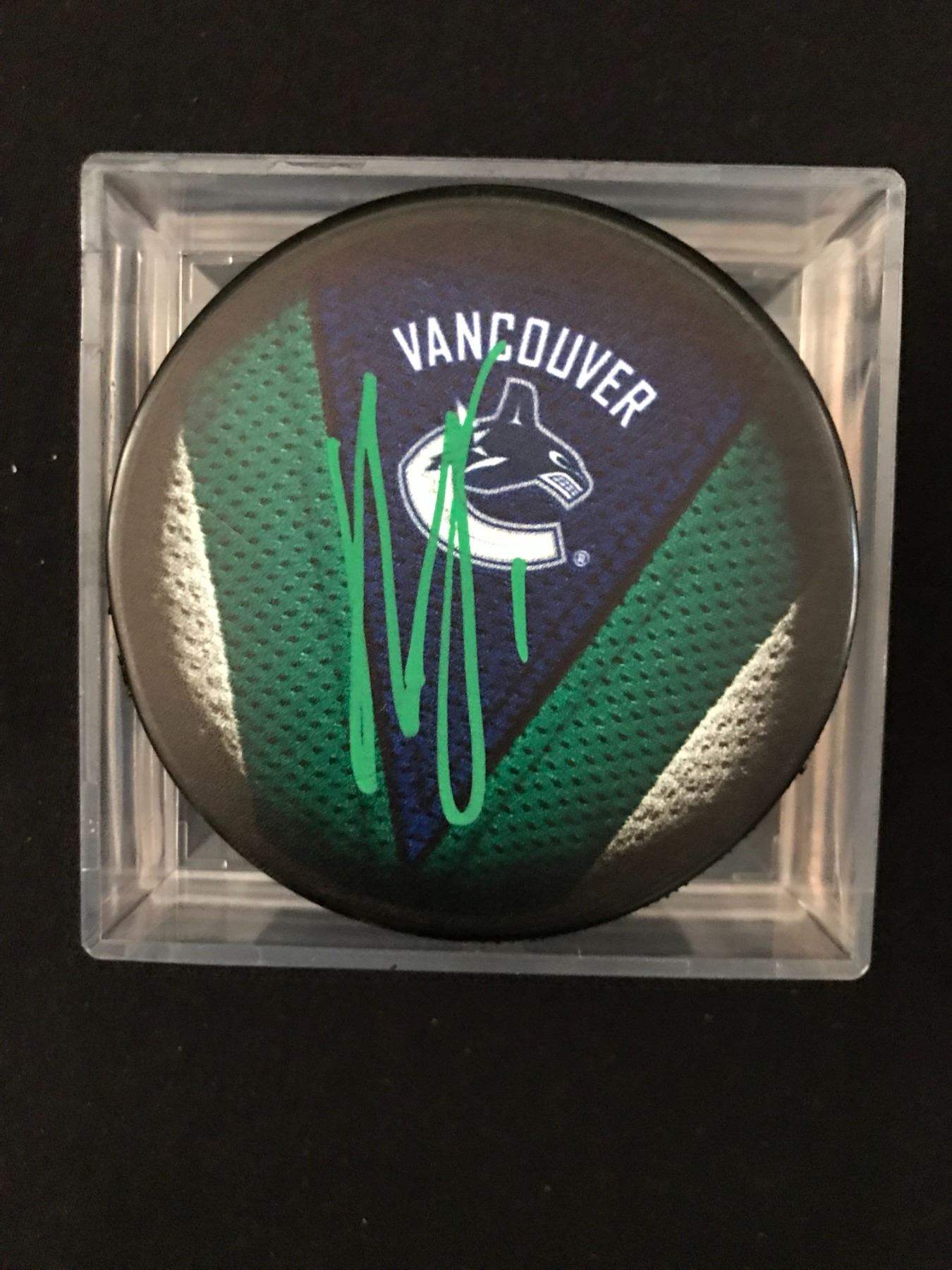 ROBERTO LUONGO SIGNED VANCOUVER CANUCKS HOCKEY PUCK (GCG HOLO)