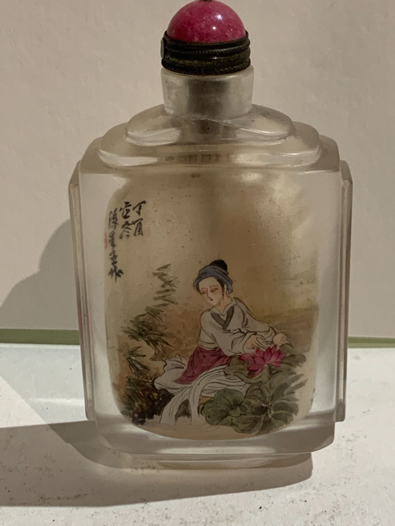 ROCK CRYSTAL INSIDE PAINTED 'LADY' SNUFF BOTTLE