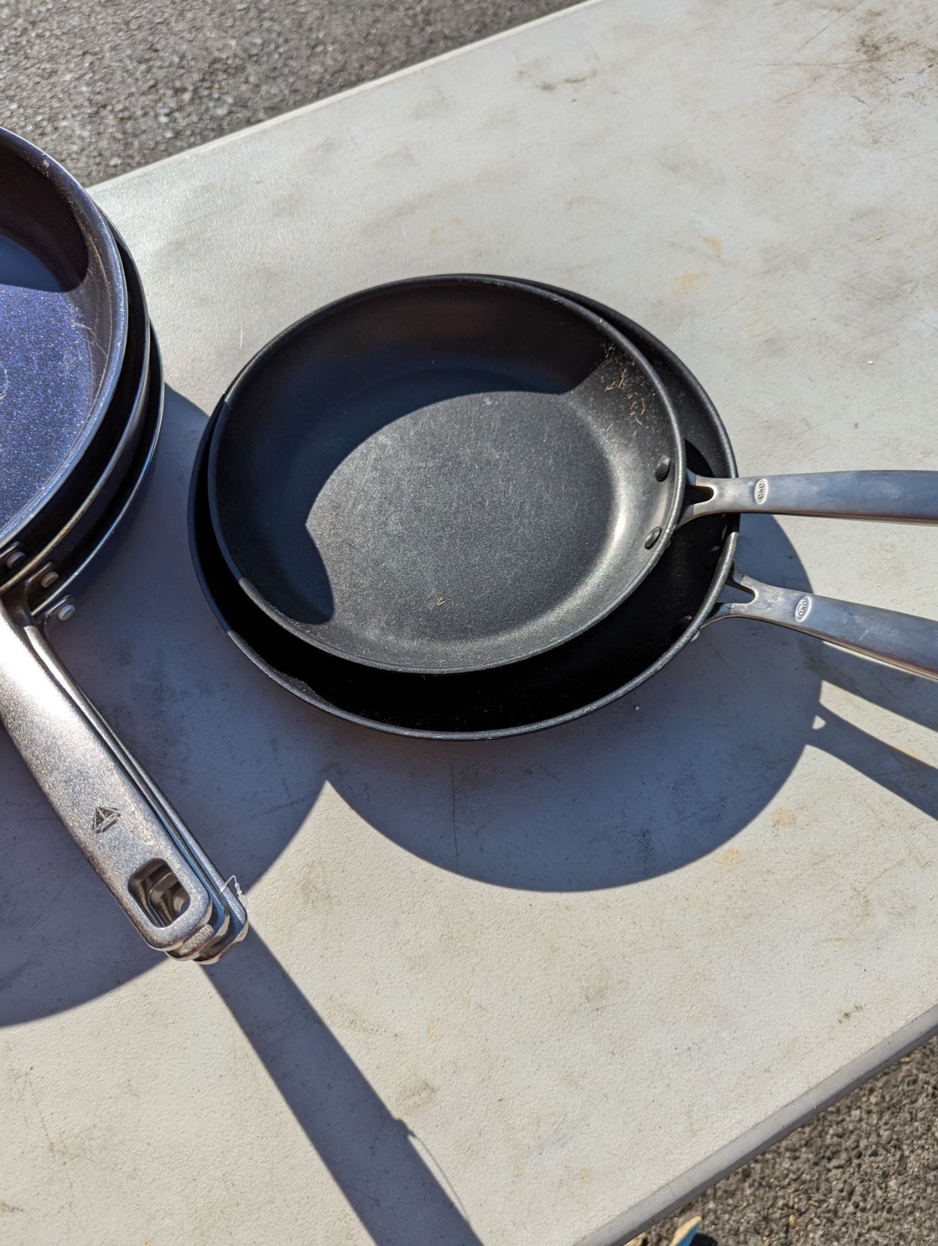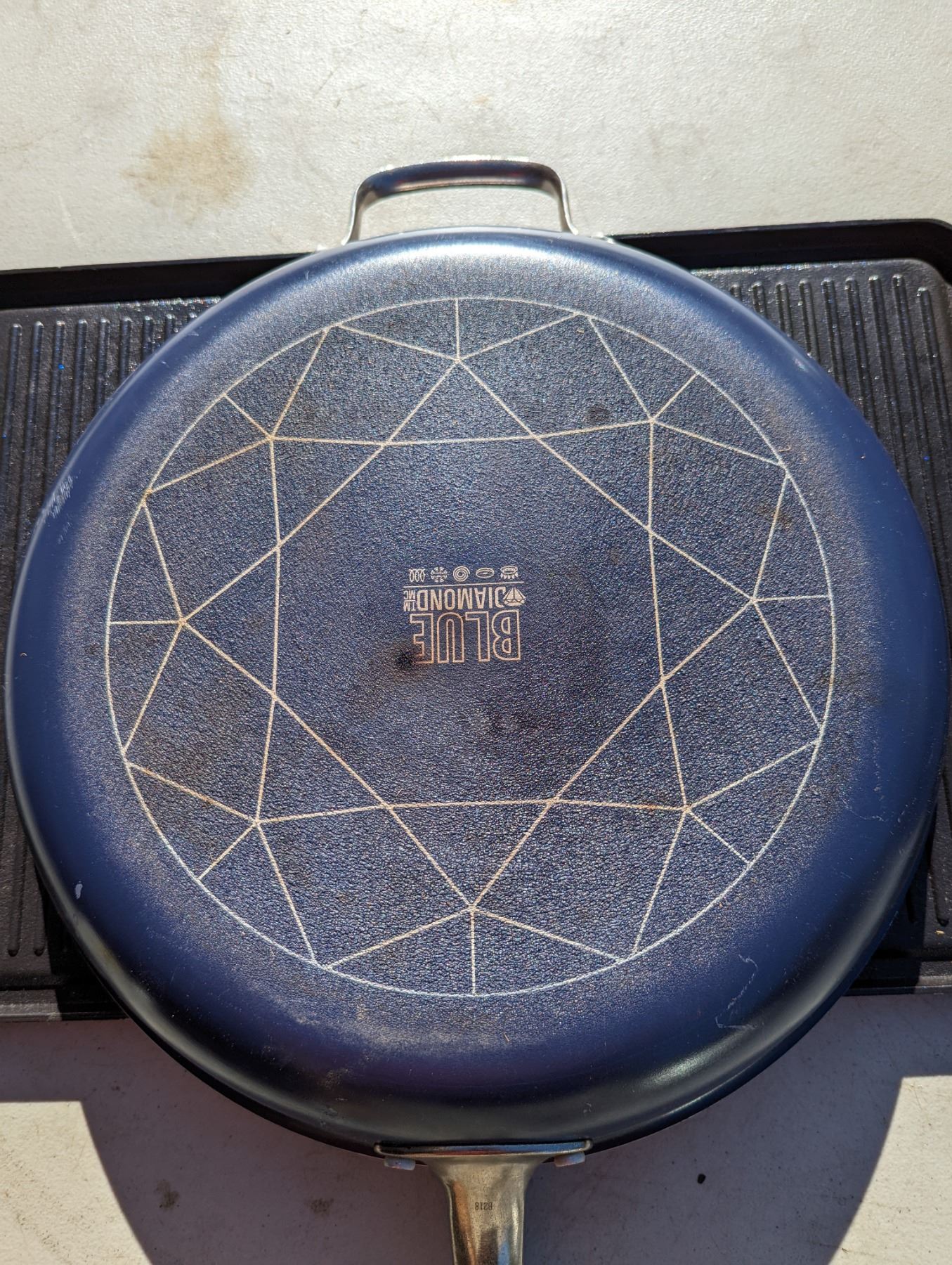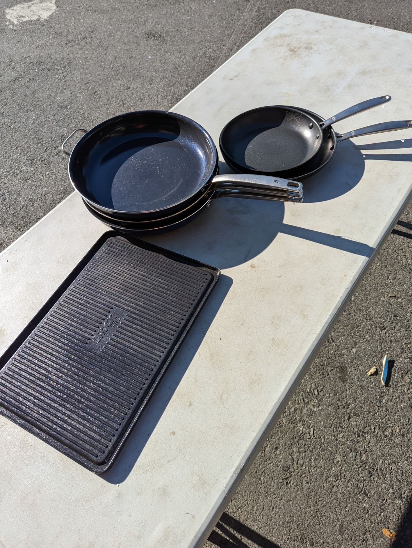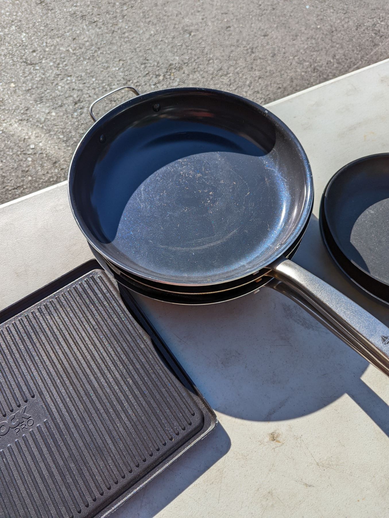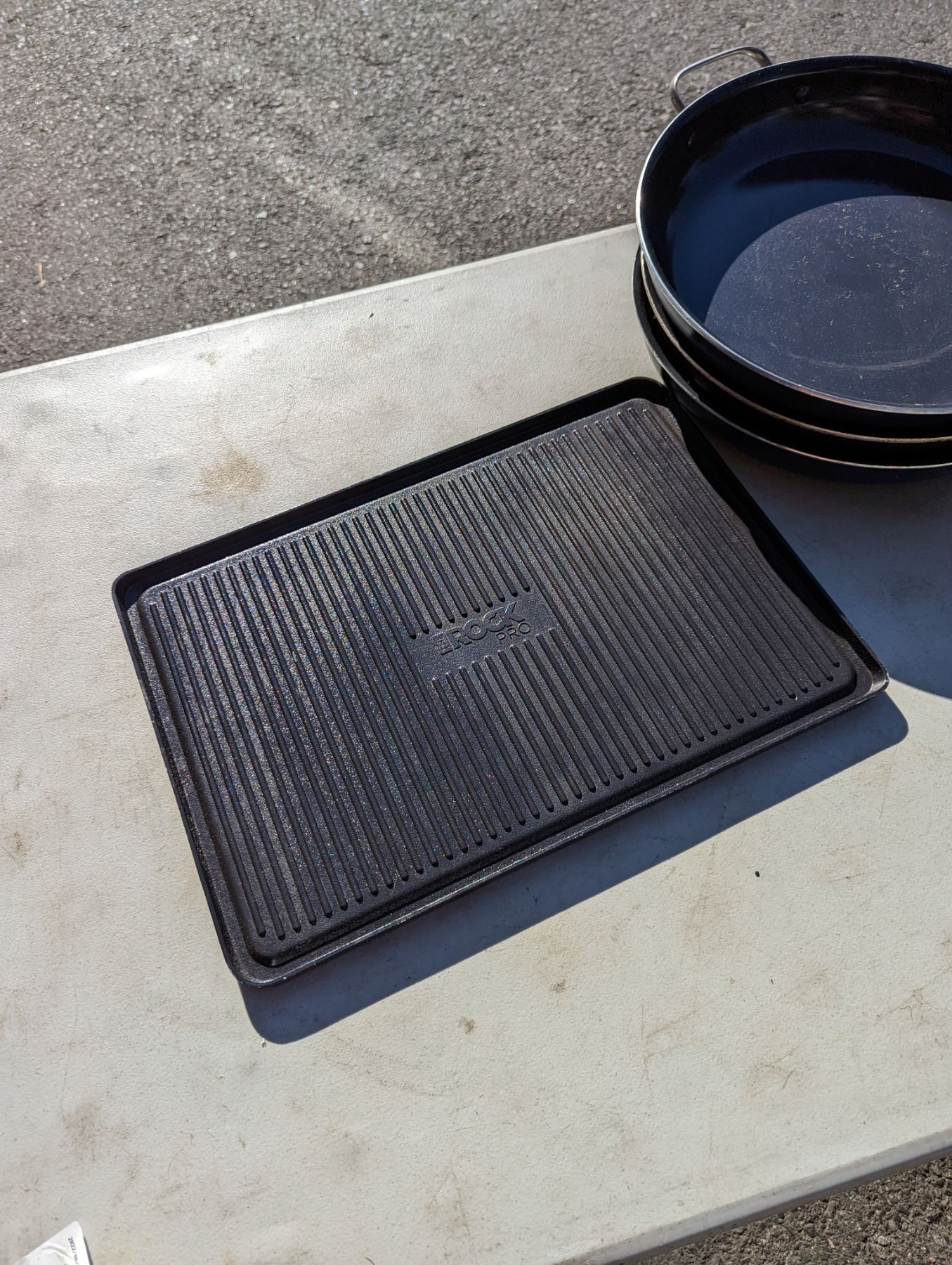 ROCK GRILL WITH 3 BLUE DIAMOND PANS AND 2 OXO PANS