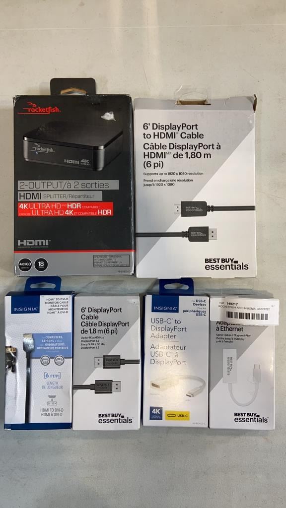 ROCKETFISH AND INSIGNIA ASSORTED CABLES, CHARGING CORDS, ETC