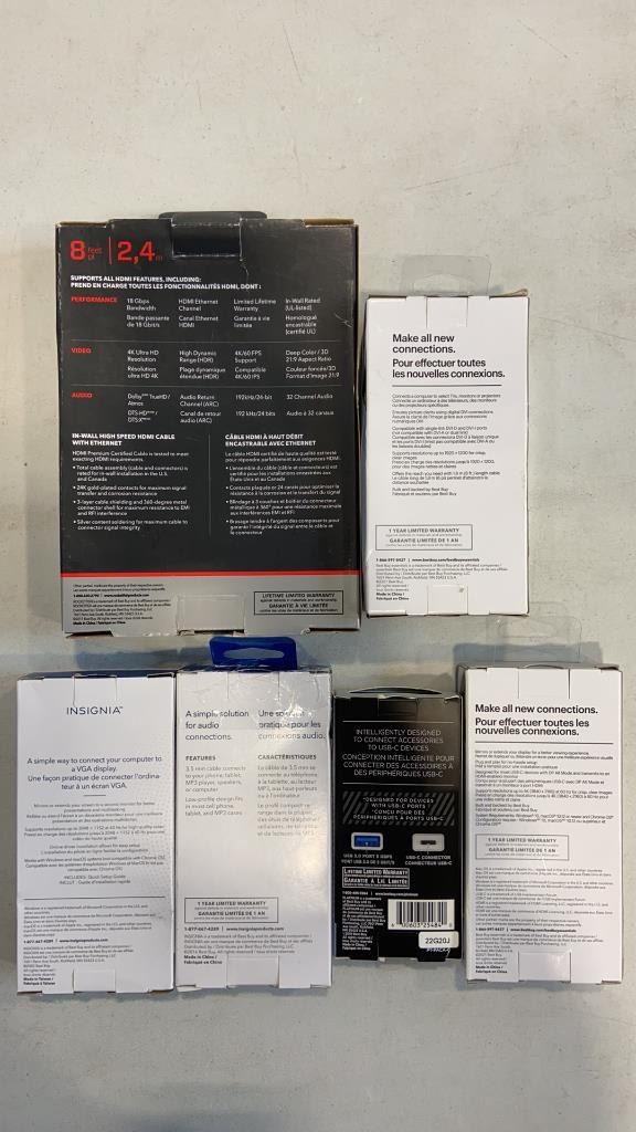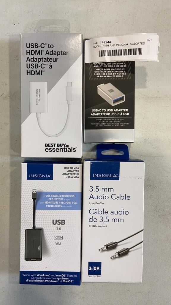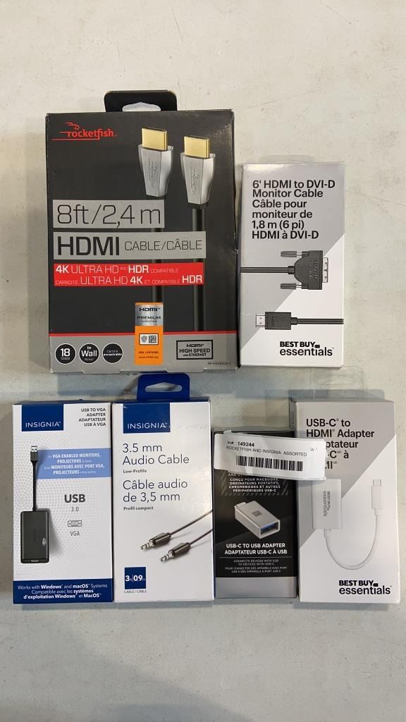 ROCKETFISH AND INSIGNIA ASSORTED CABLES, CHARGING CORDS, ETC