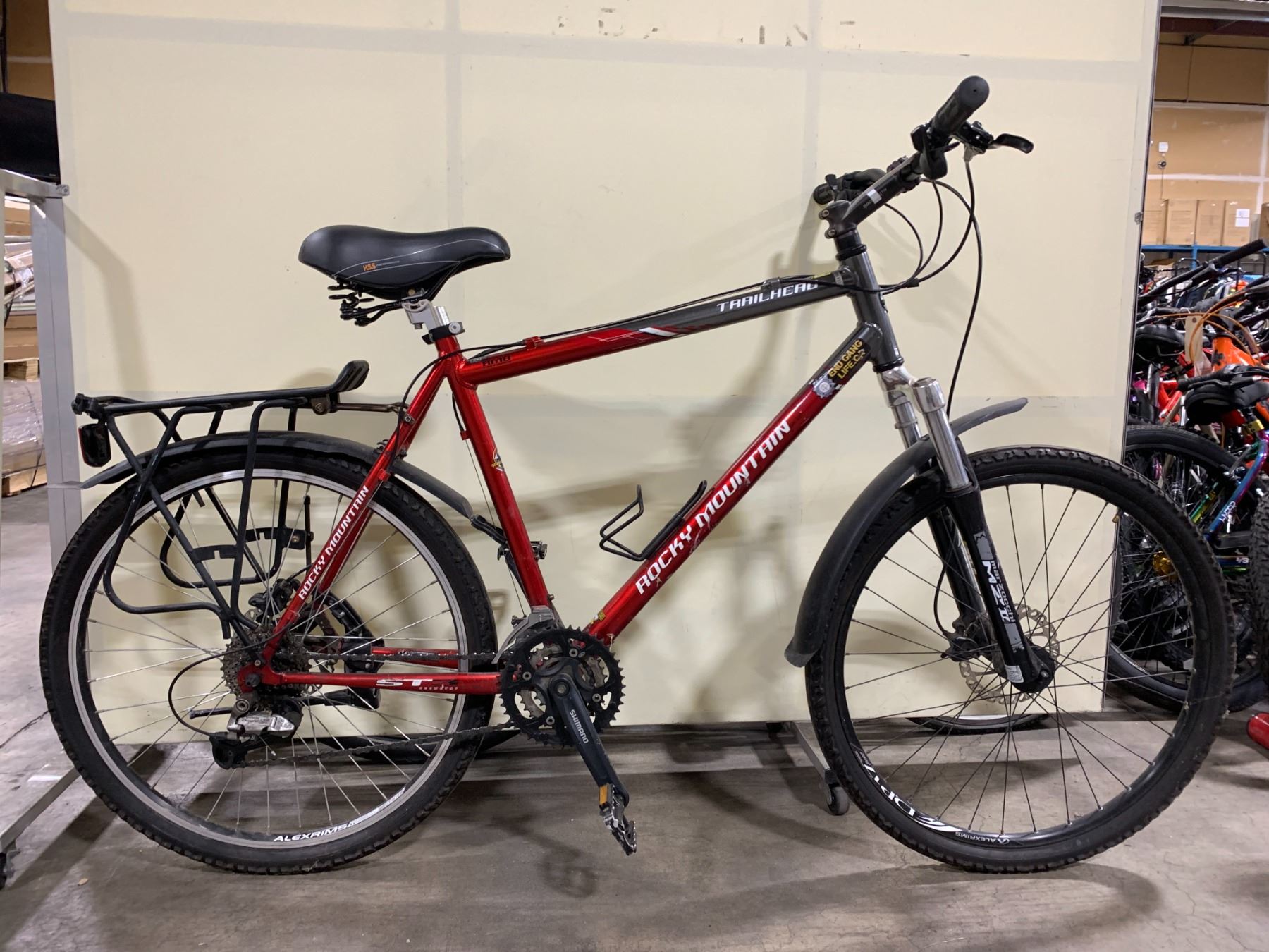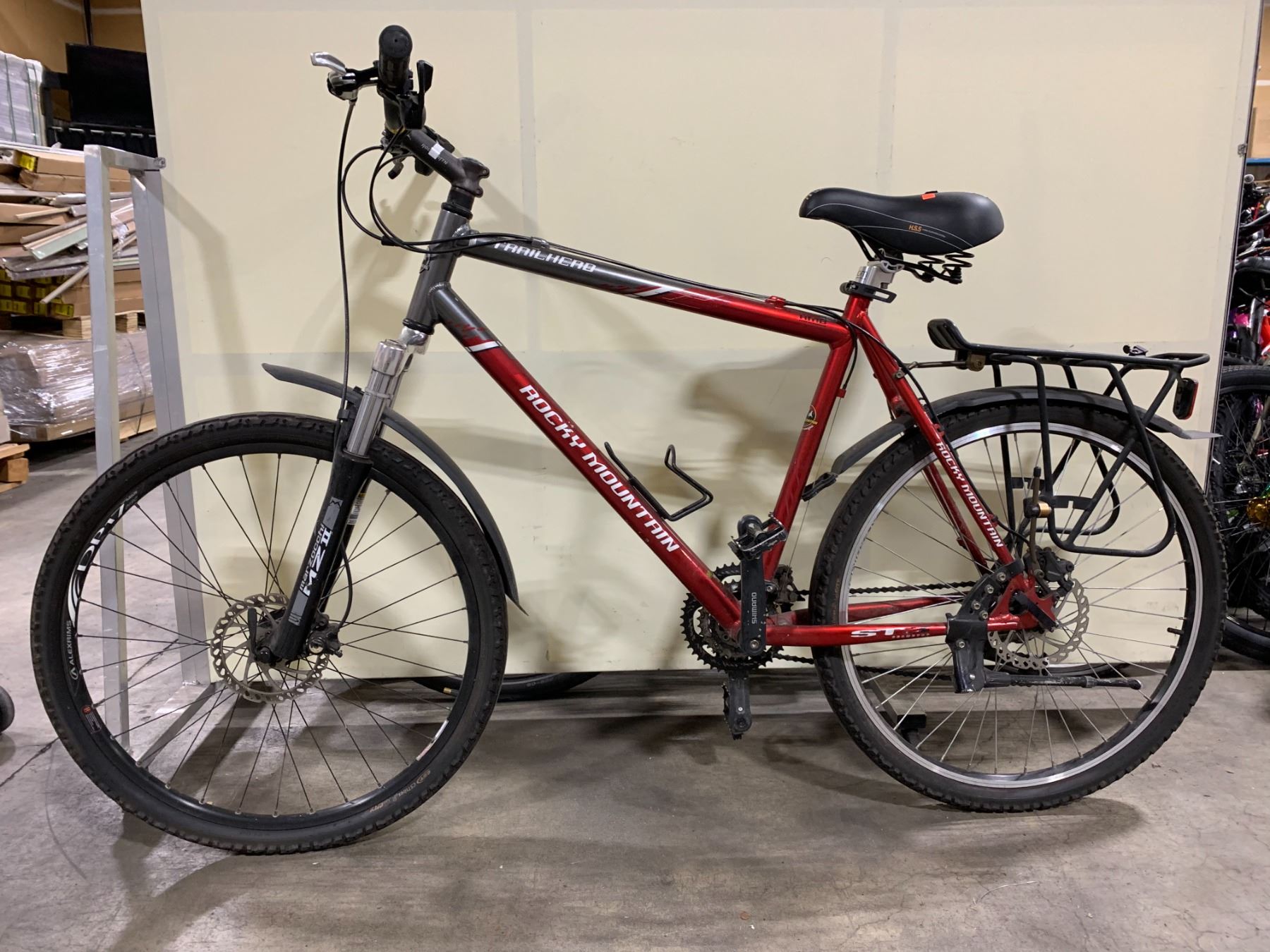 ROCKY MOUNTAIN TRAILHEAD RED WITH CHARCOAL DETAILS 24 SPEED FRONT SUSPENSION HYBRID STYLE WITH FULL DISC BRAKES