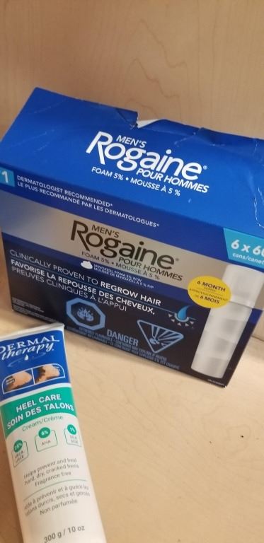 ROGAINE, RENU SOLTION AND DERMAL THERAPY HEEL CARE CREAM