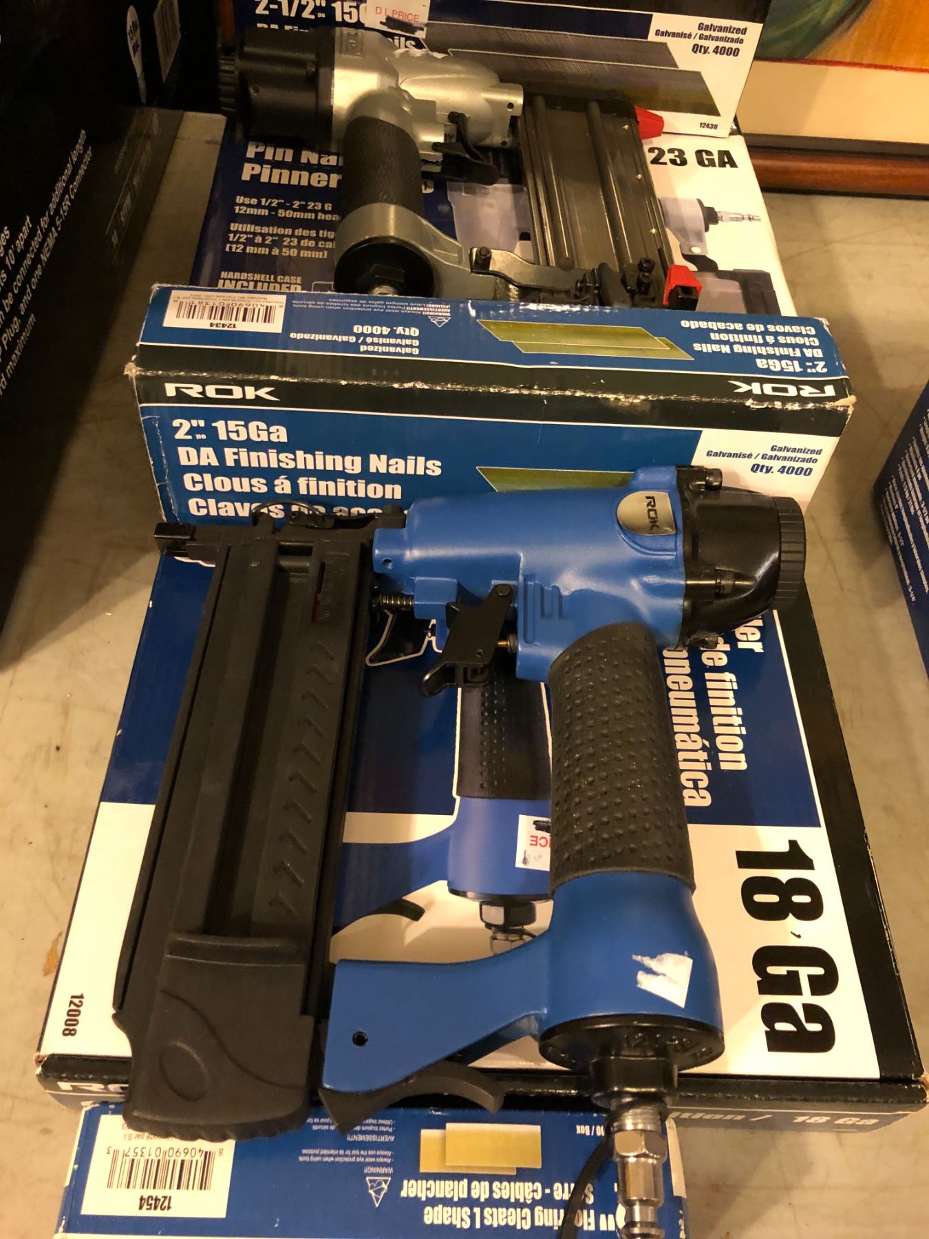 ROK set of 2in pin nailers & 2in brad nailer w/ 3 boxes of finishing nails