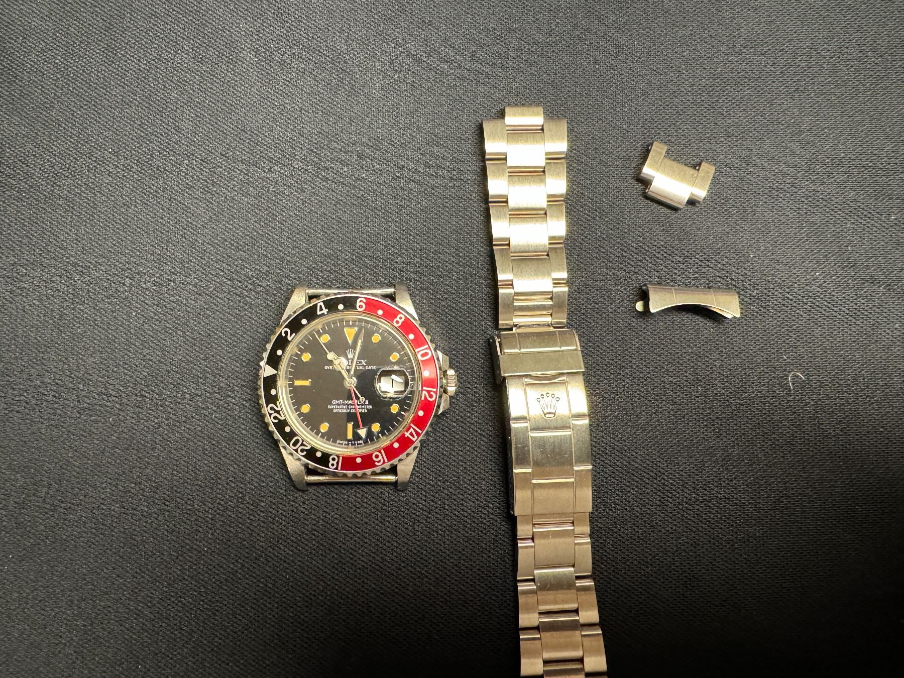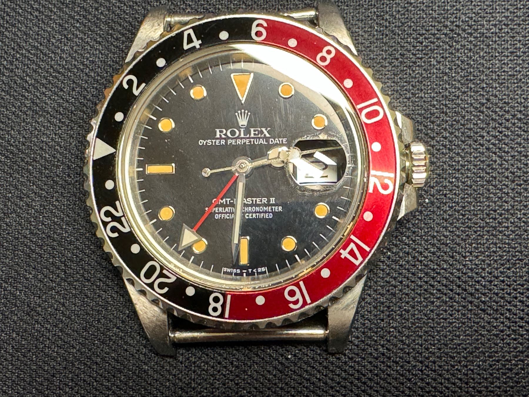 ROLEX OYSTER PERPETUAL DATE GMT-MASTER II MEN'S WRISTWATCH WITH ORIGINAL ROLEX BOX WATCH MARKED 16760, REPLACEMENT VALUE $48,000.00