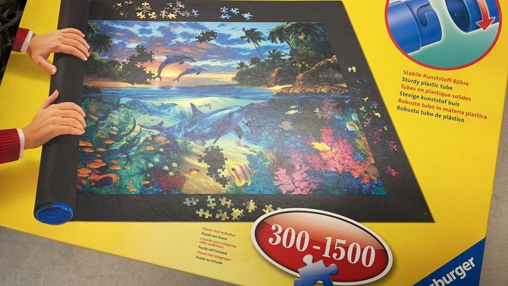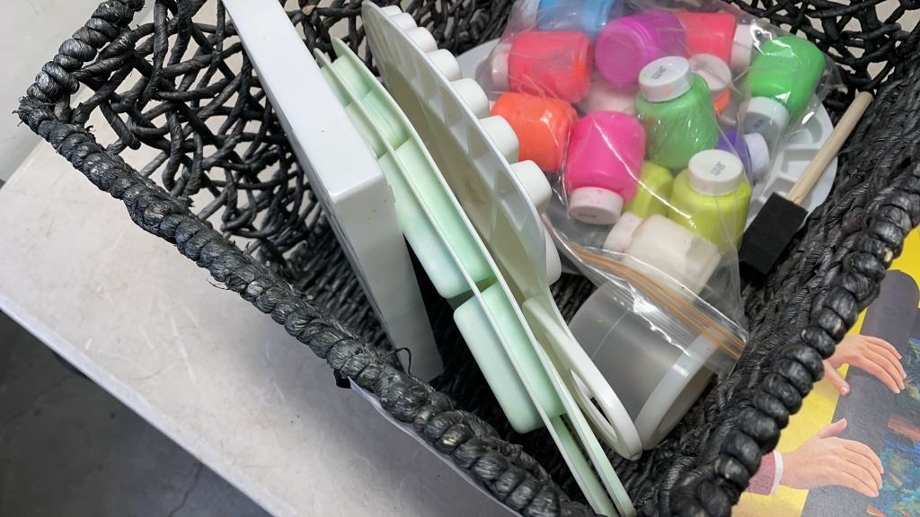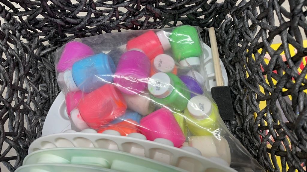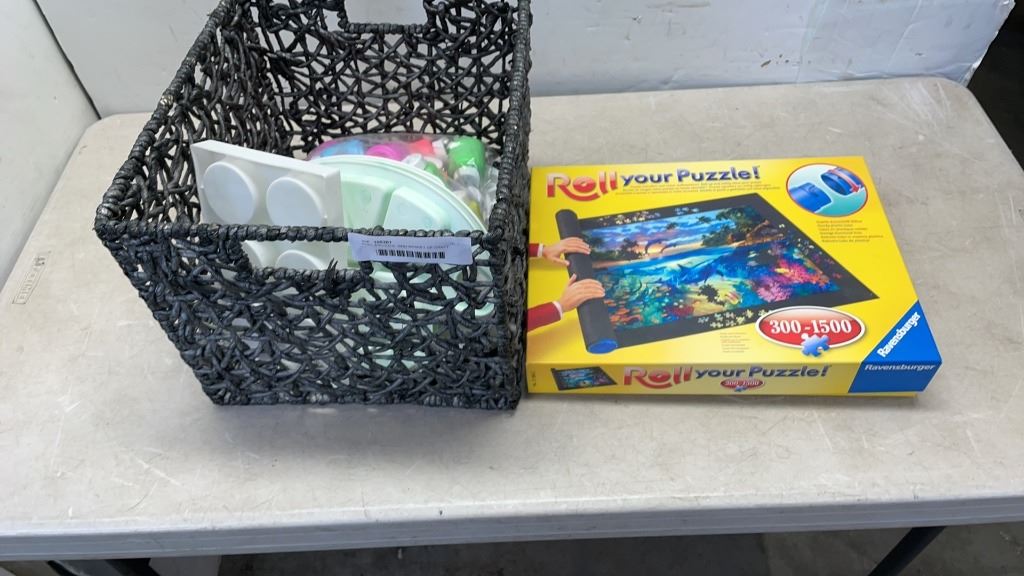 ROLL A PUZZLE AND BASKET OF CRAFT PAINT
