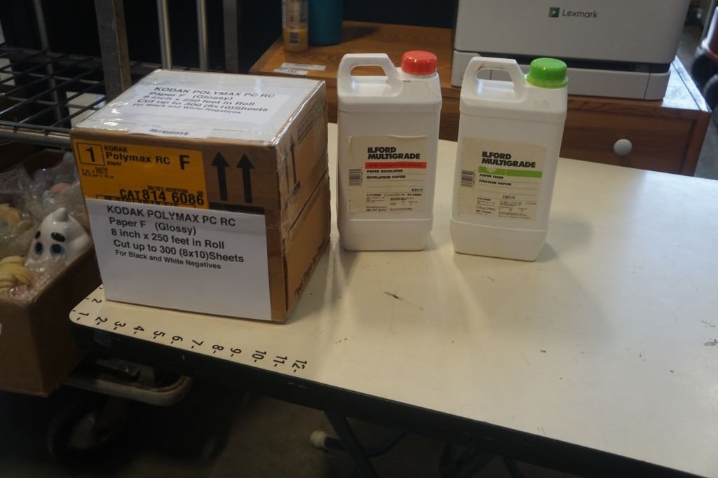 ROLL OF KODAK POLYMAX PAPER AND 2 JUGS PAPER FIXER AND DEVELOPER
