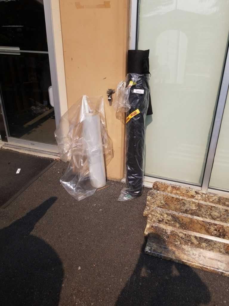 ROLL OF PLASTIC BAGS AND ROLL OF LANDSCAPING BARRIER FABRIC