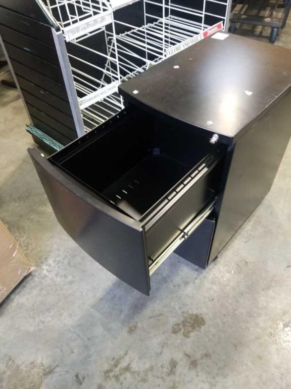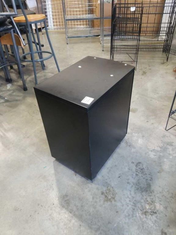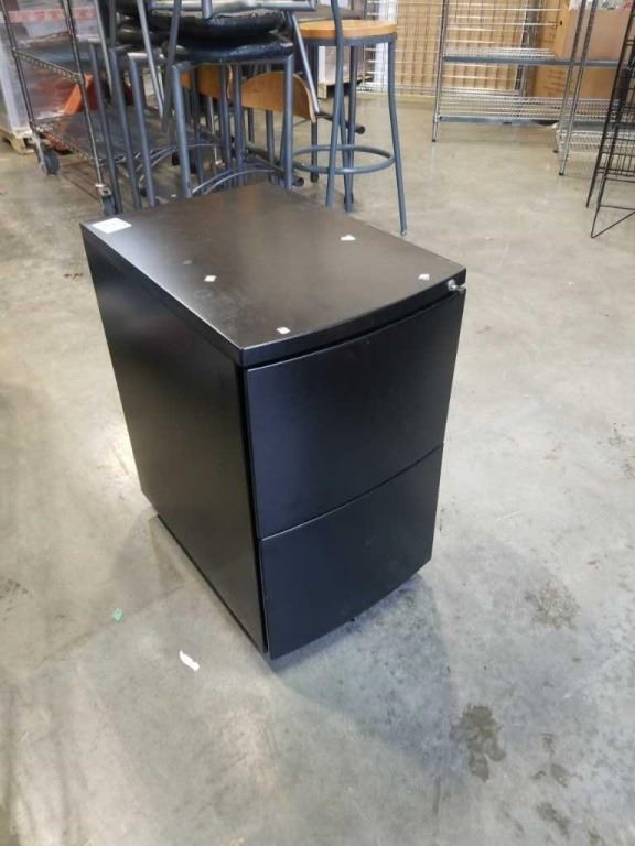 ROLLING BLACK METAL 2 DRAWER FILING CABINET