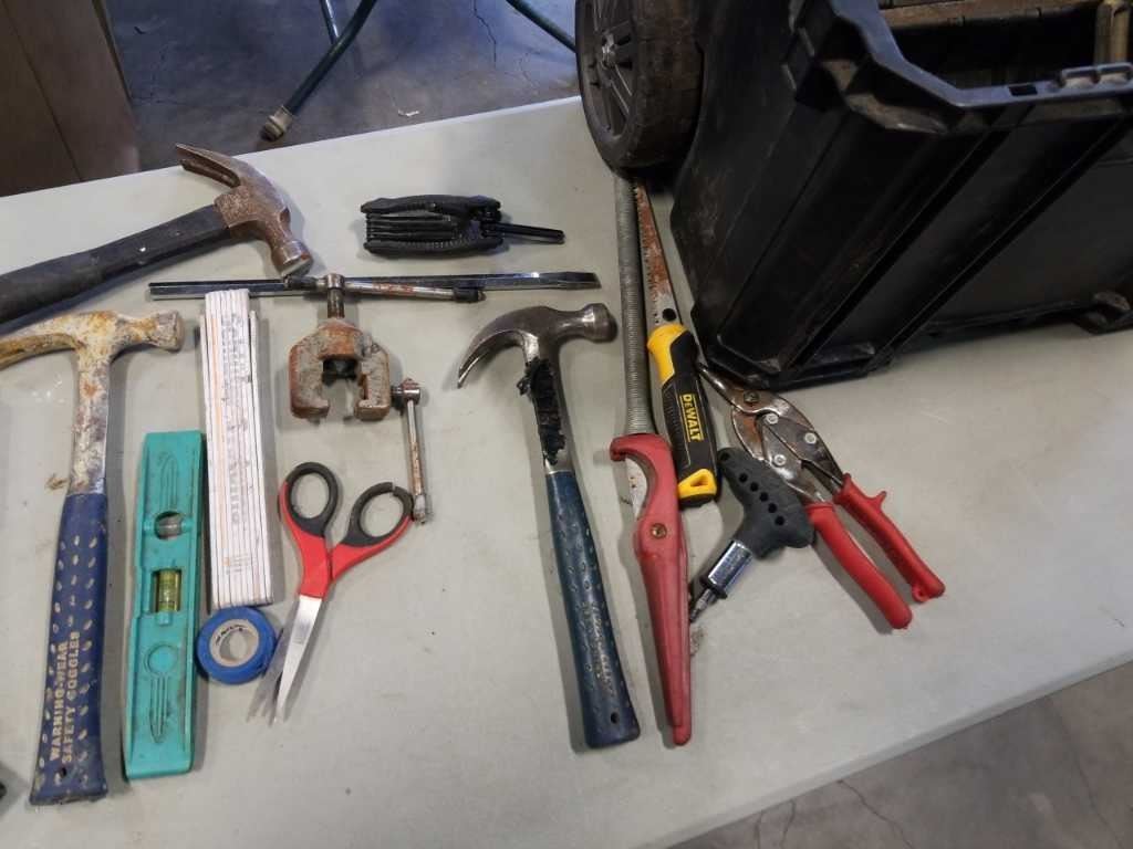 ROLLING TOOLBOX WITH CONTENTS INCLUDING HAMMERS, PLIERS, HAND TOOLS