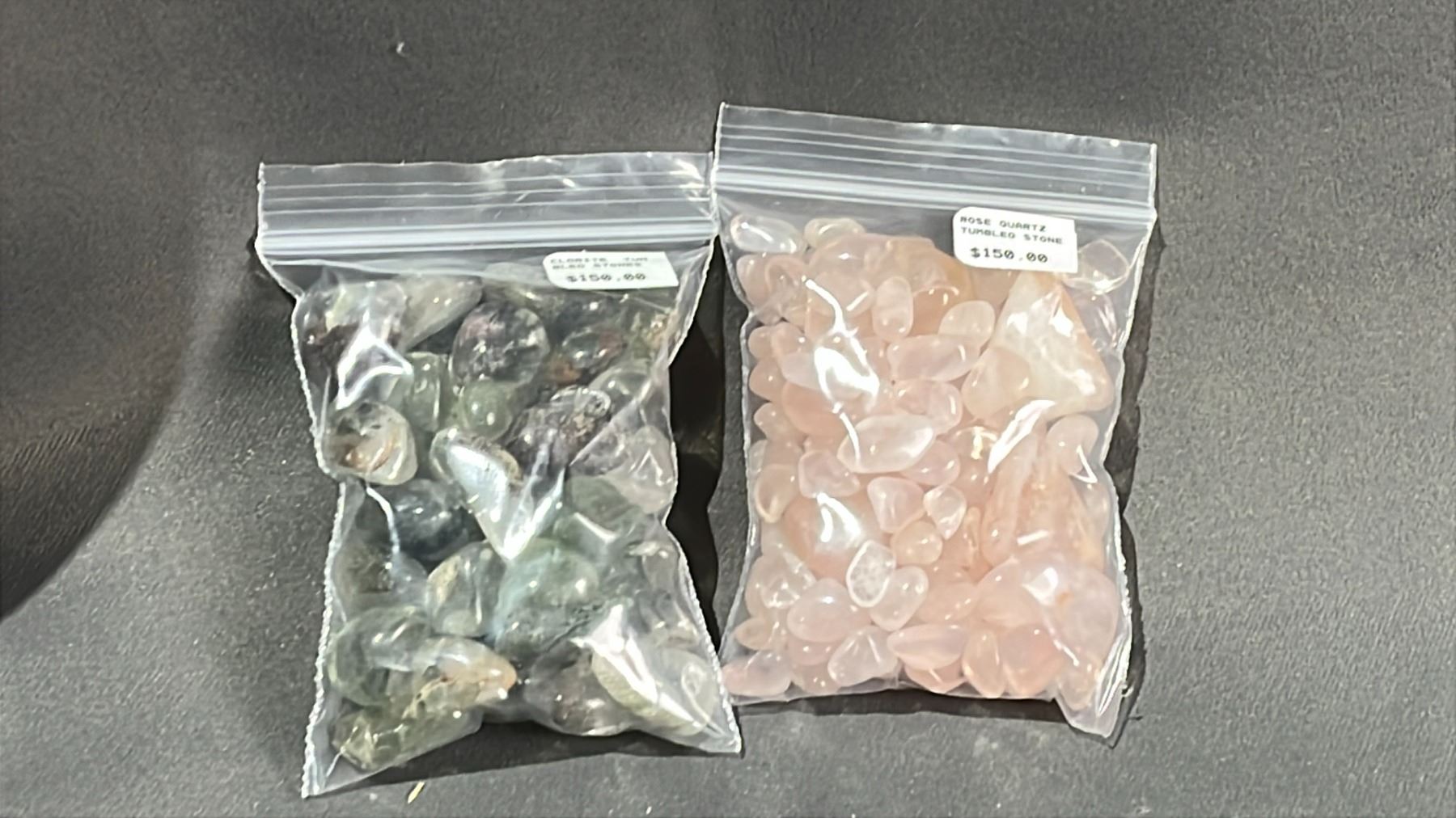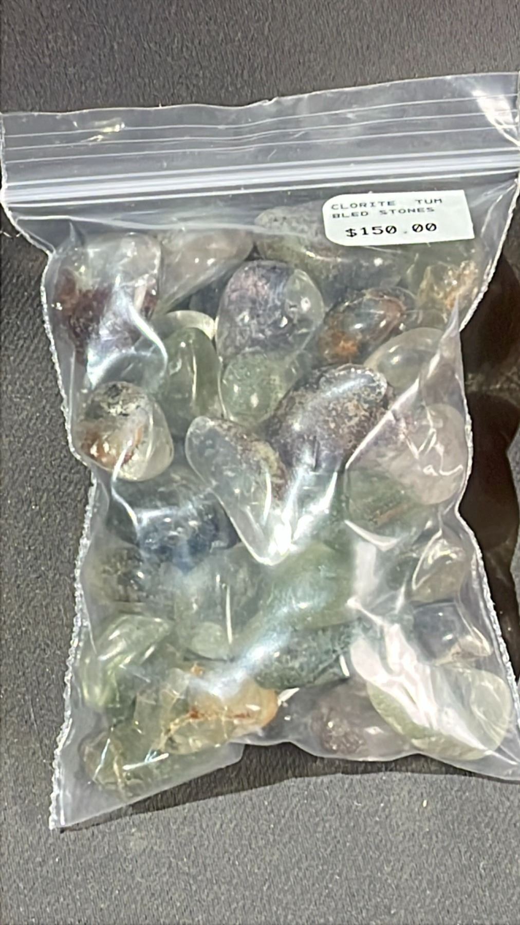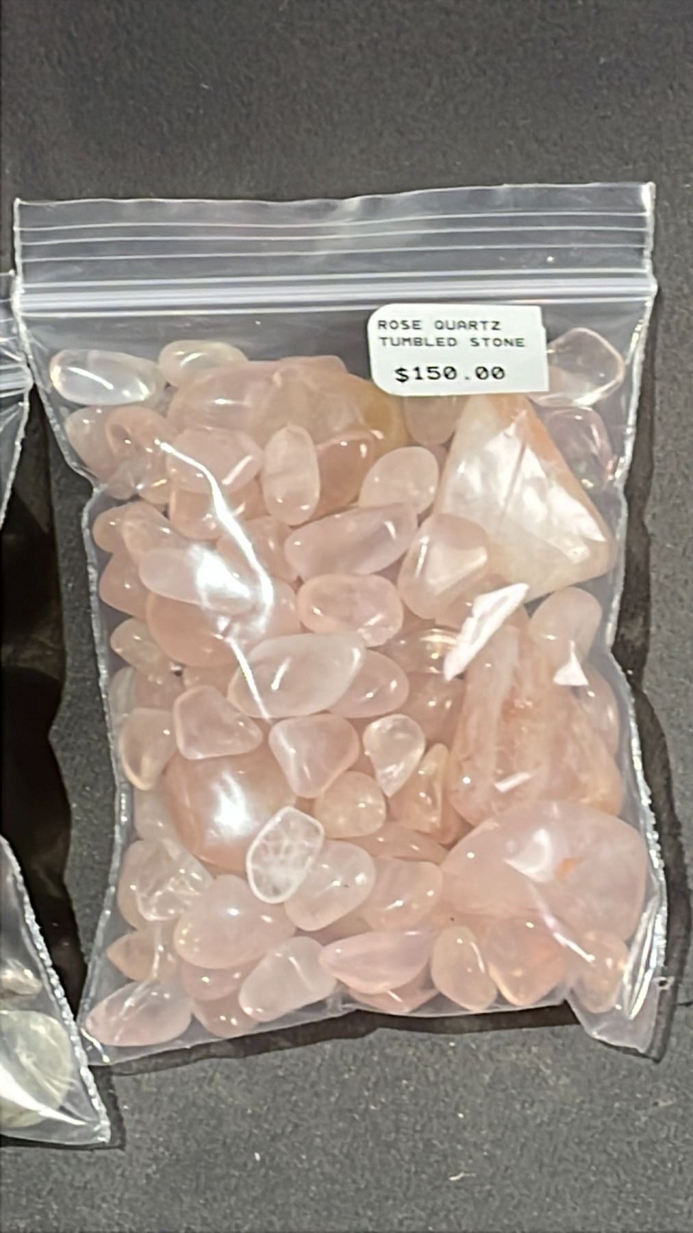 ROSE QUARTZ TUMBLED STONES AND CHLORITE TUMBLED STONES RETAIL $150 EACH